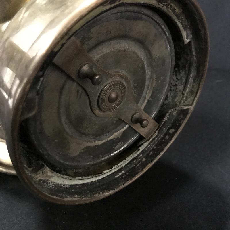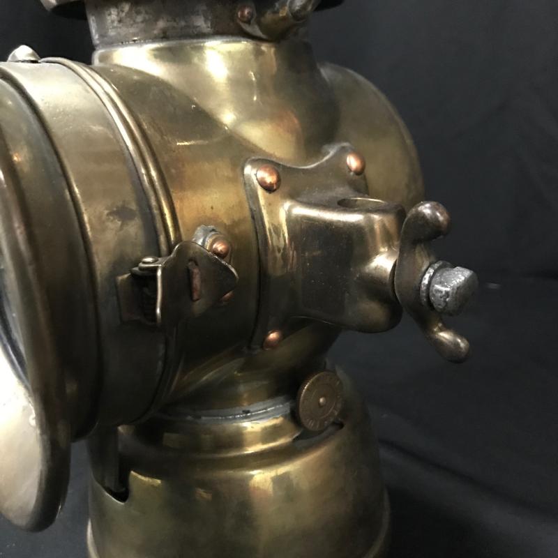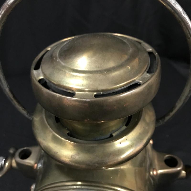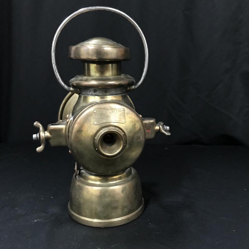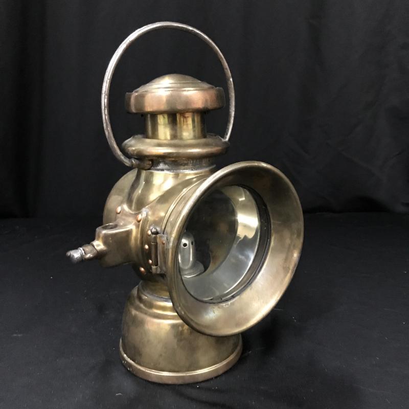 Antique brass car oil lamp for military vehicle. Plaque on back says “ Lucas No 722 King Road”. Measures 9”l x 7”w x 13”h Excellent Condition. Shipping or local pick up in Asheville