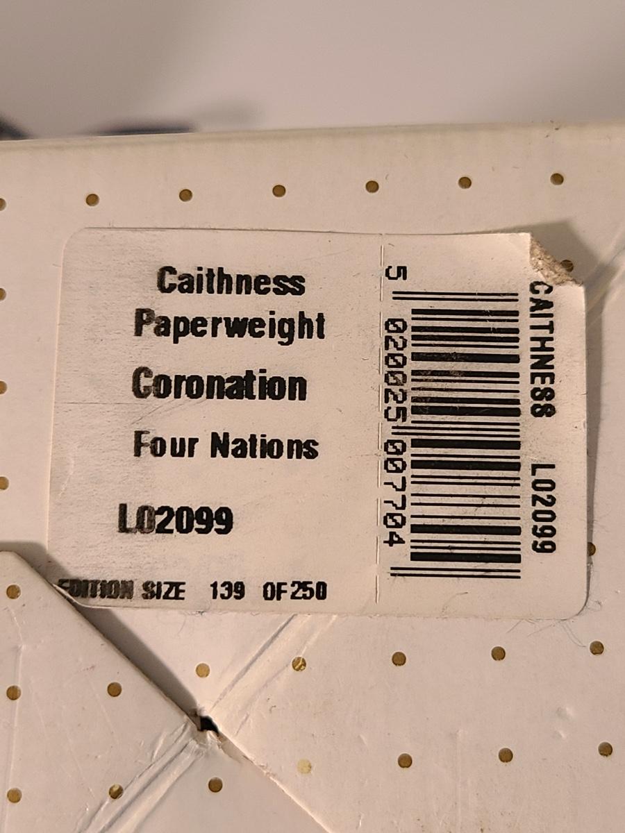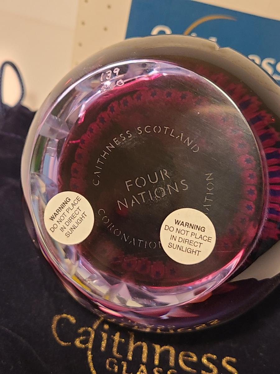 Lot 229: Caithness "Four Nations Coronation" Art Glass Paperweight Made in Scotland