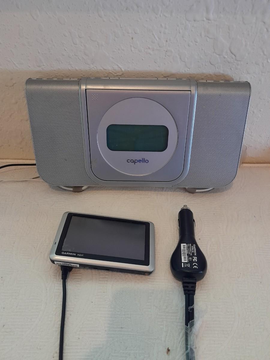 CAPELLO CD CLOCK RADIO WITH DUAL ALARM AND GARMIN NUVI