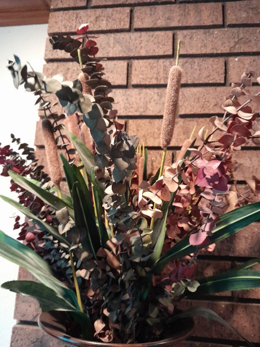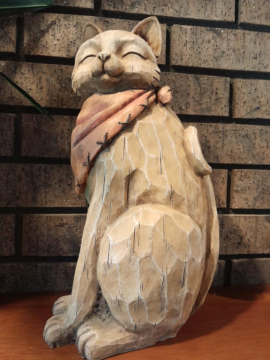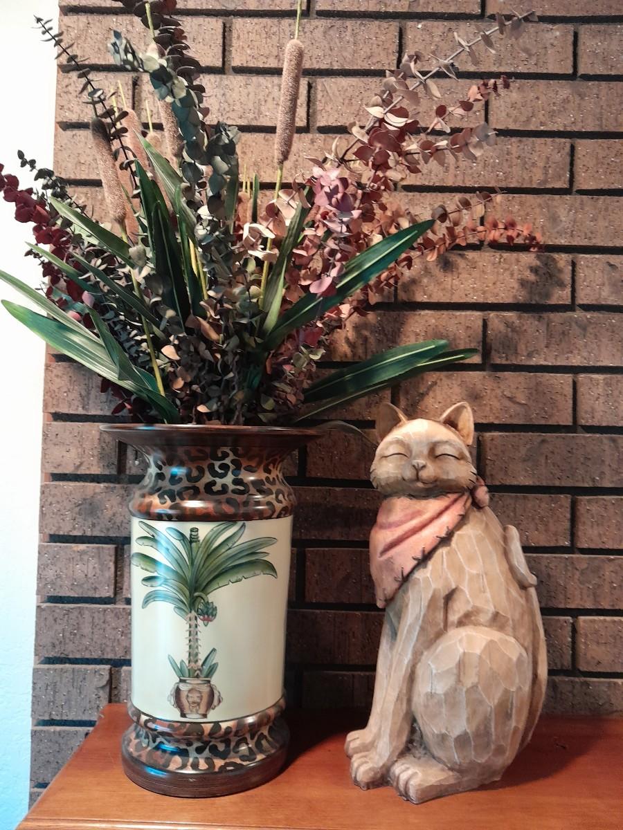 DECORATIVE VASE WITH FAUX FLOWERS, AND A RESIN- LIKE CAT STATUE