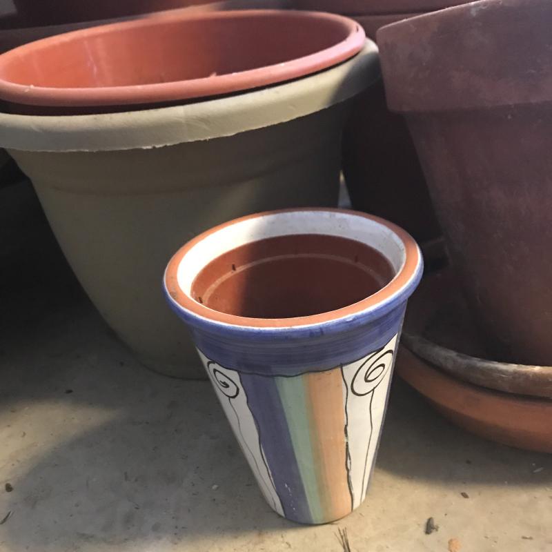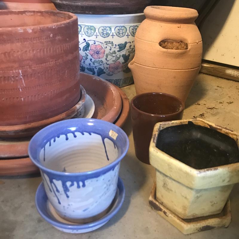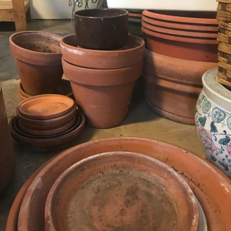 Large assortment of pots includes clay, plastic, basket and ceramic pots. You’ll also find a watering can, some books about gardening and some rubber mats for easy clean up. No shipping. Local pick up only in Asheville, NC.