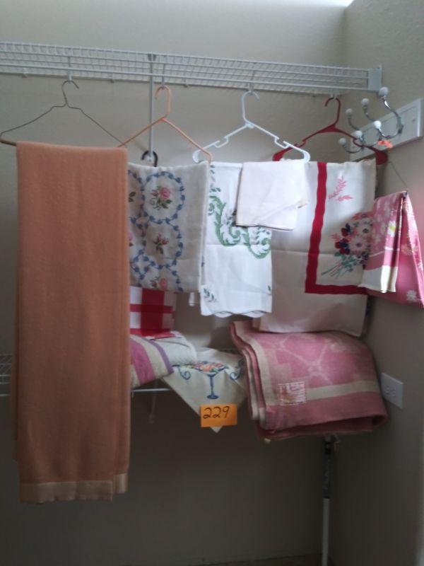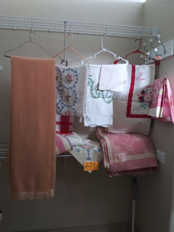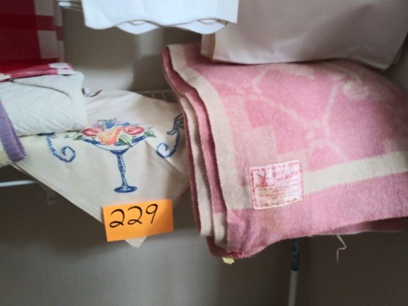 2 WOOL BLANKETS AND TABLE CLOTHS