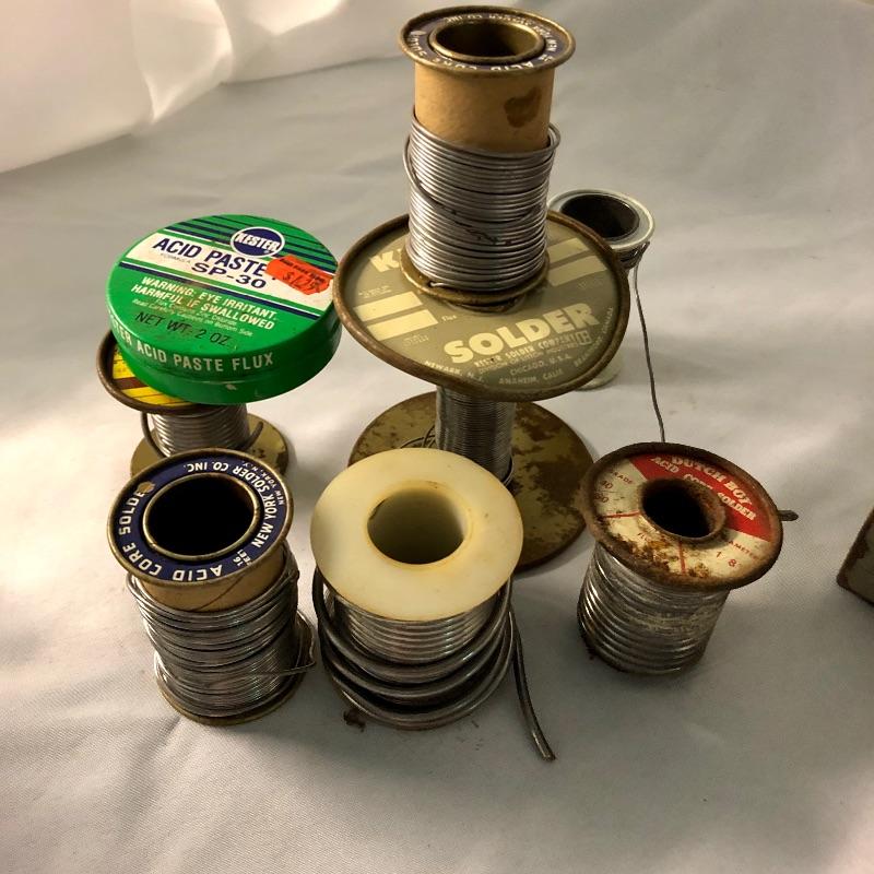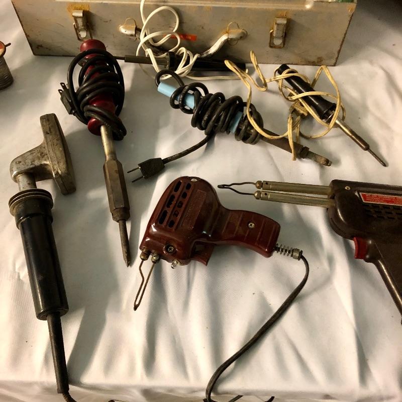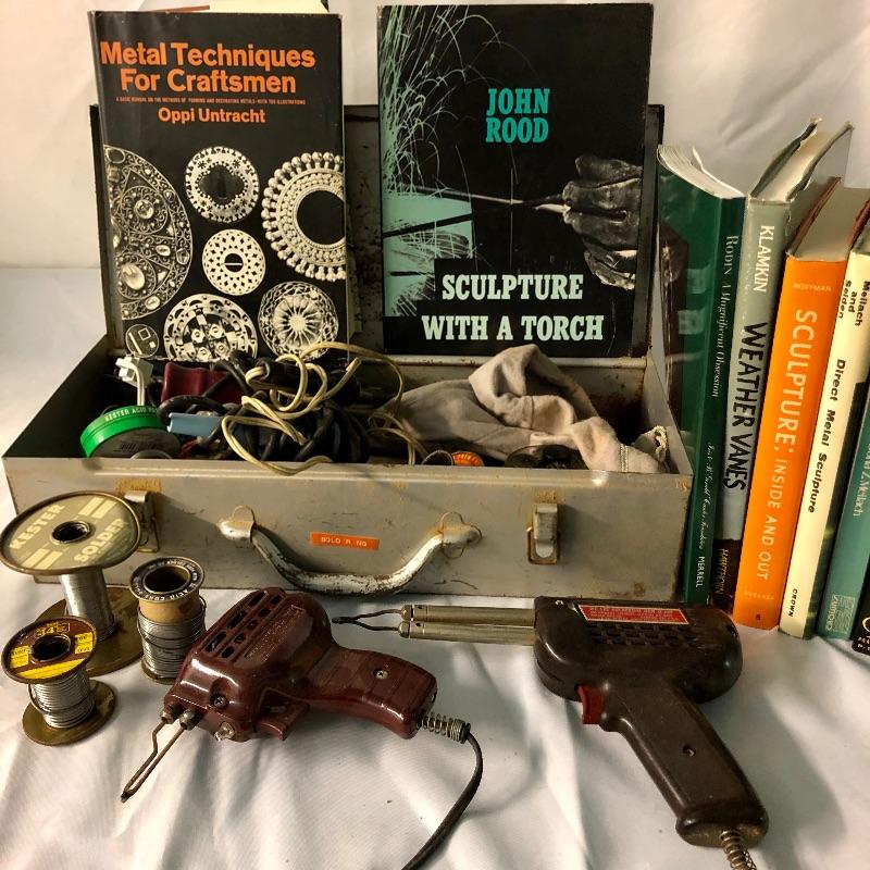 Lots of soldering guns and core solder in this great lot. See images for all the varieties of solder guns that could be yours! In addition to a good amount of core solder we have thrown in a stack of books related to making metal sculptures and more.