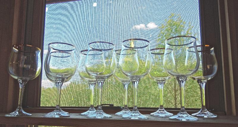 Lot 229: Seventeen Noritake "Bradford" Gold Rim Wine Glasses