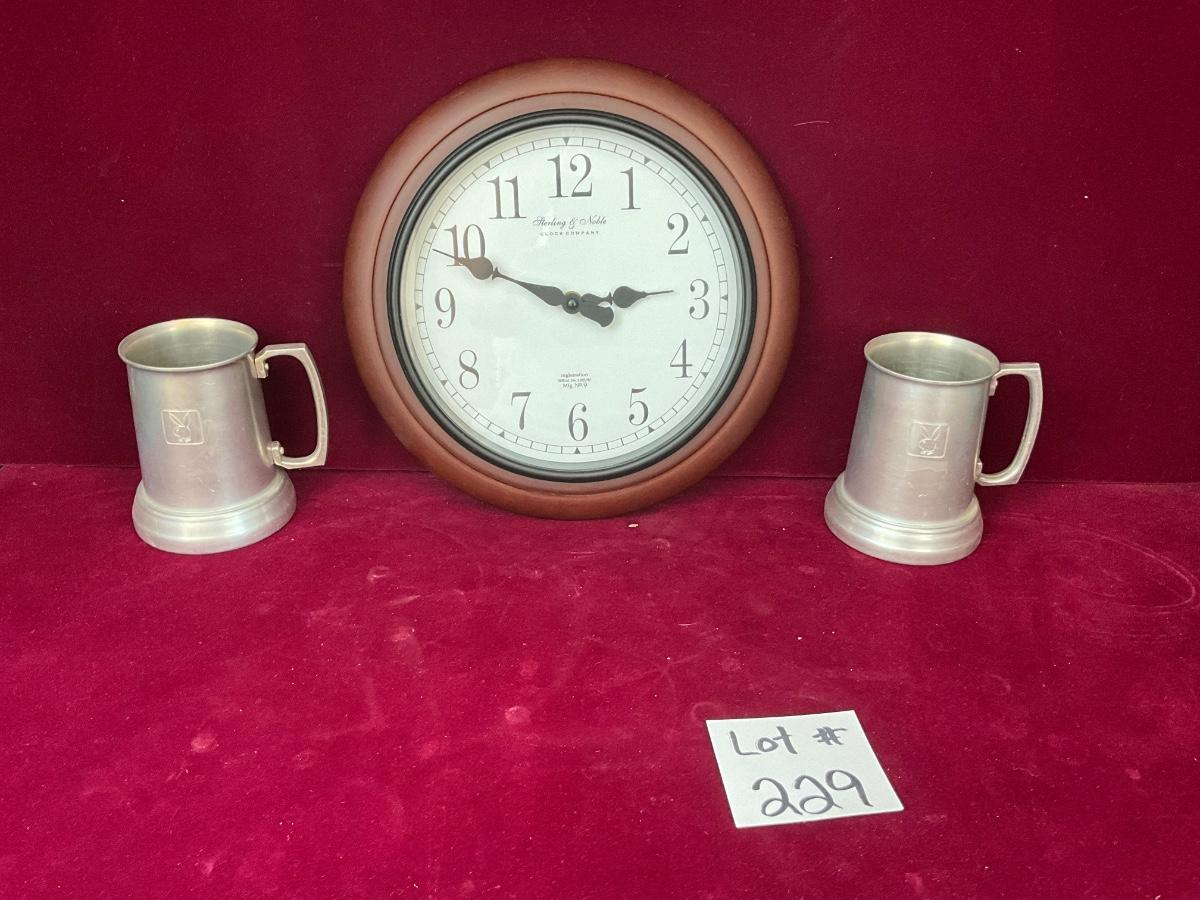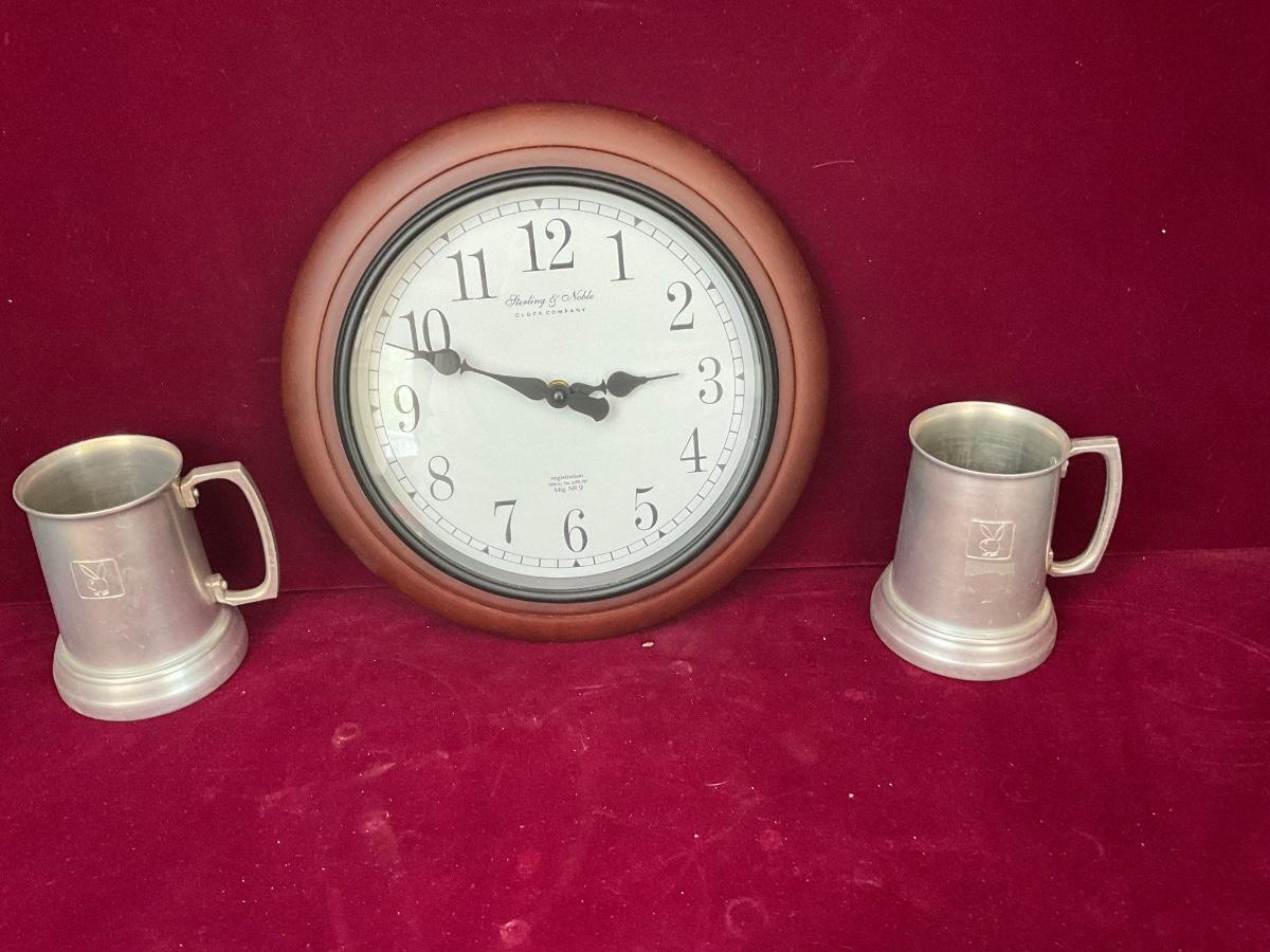 Lot# 229 Sterling & Noble Clock Co. Clock / Pair of Aluminum Mugs