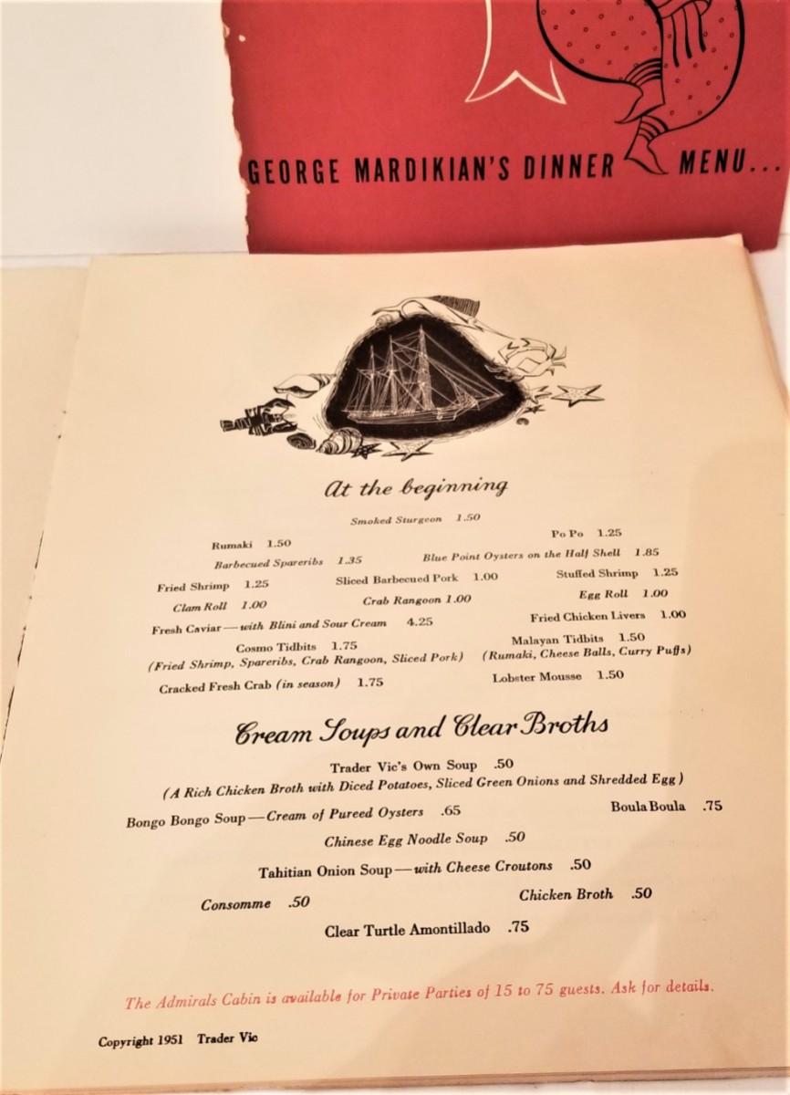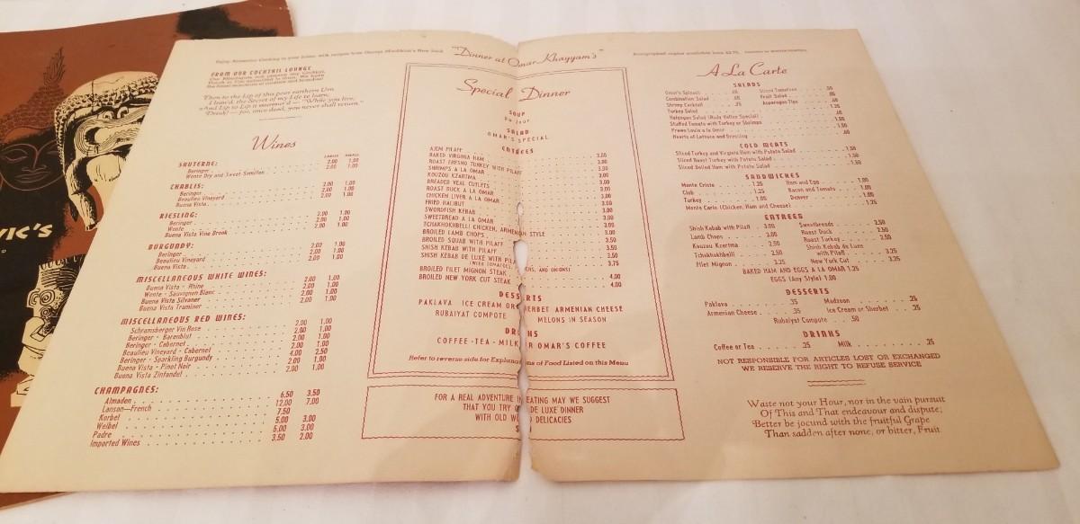 Lot #229 Two Vintage Menus - Trader Joe's and Omar Khayyam - 1950's