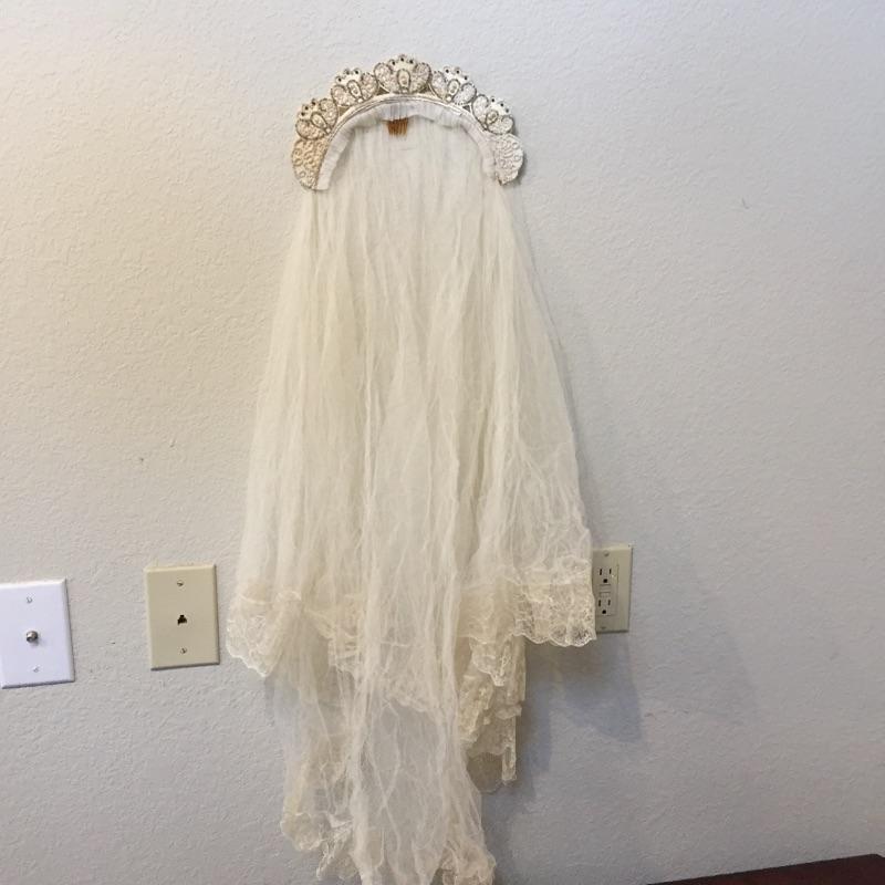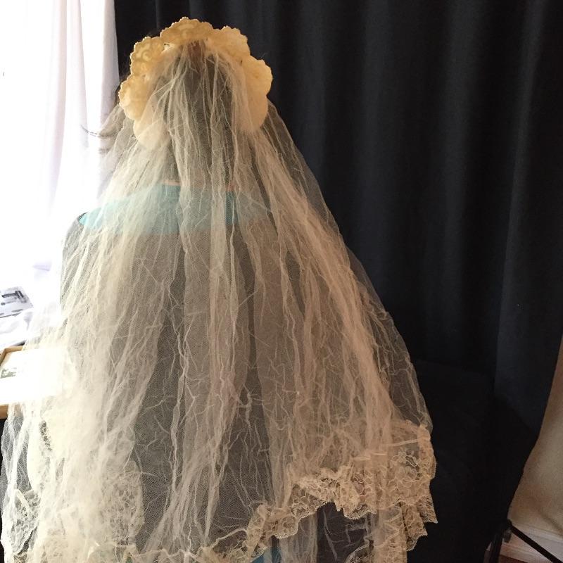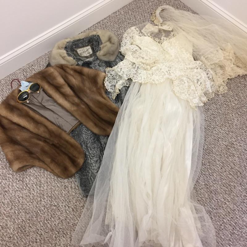 Vintage wedding dress with veil,stunning fur coat,fur shawl and Christian Dior Glasses. Get ready for winter with these beautiful clothes.