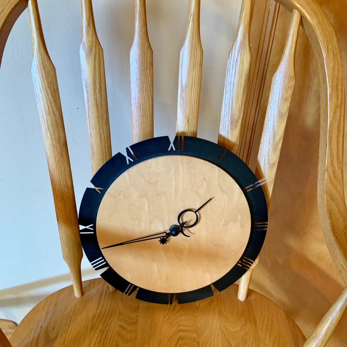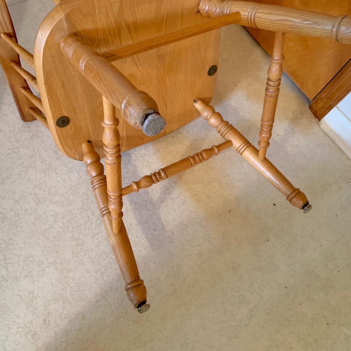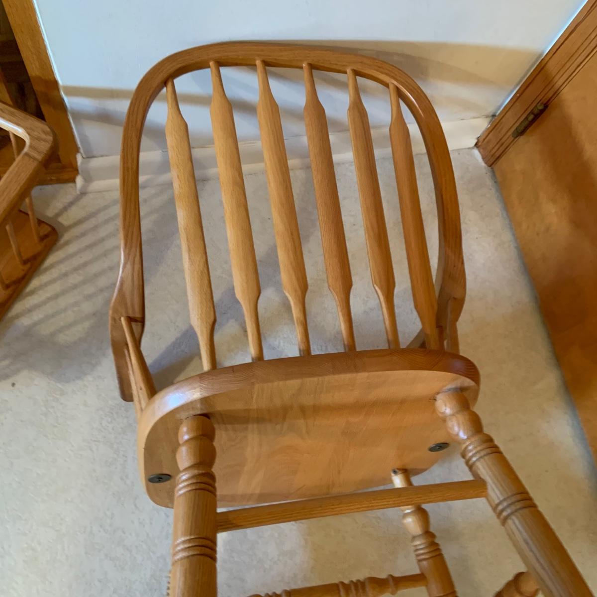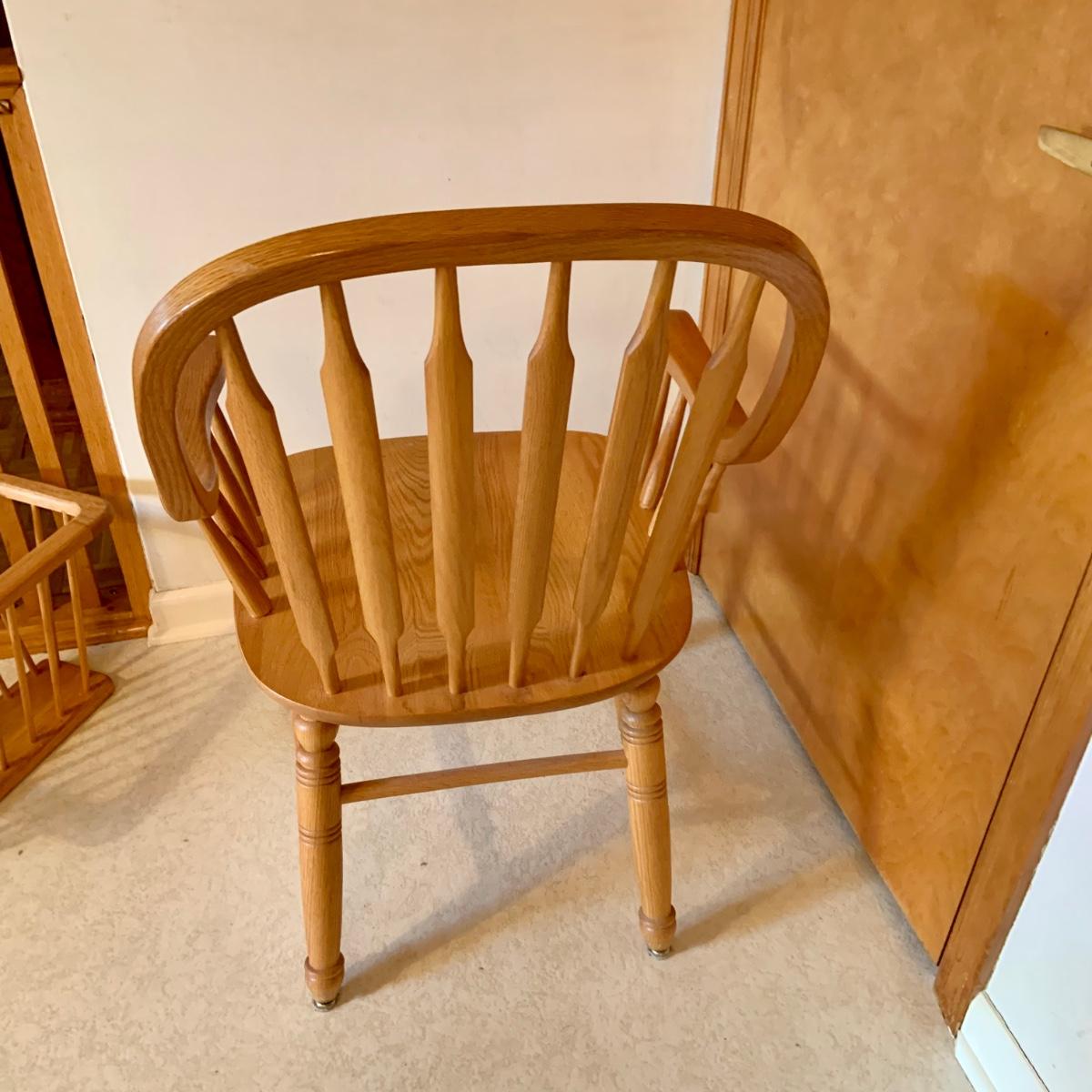 Lot: 229G: Amish Style Paddle Chair with Wood Magazine Rack and Clock