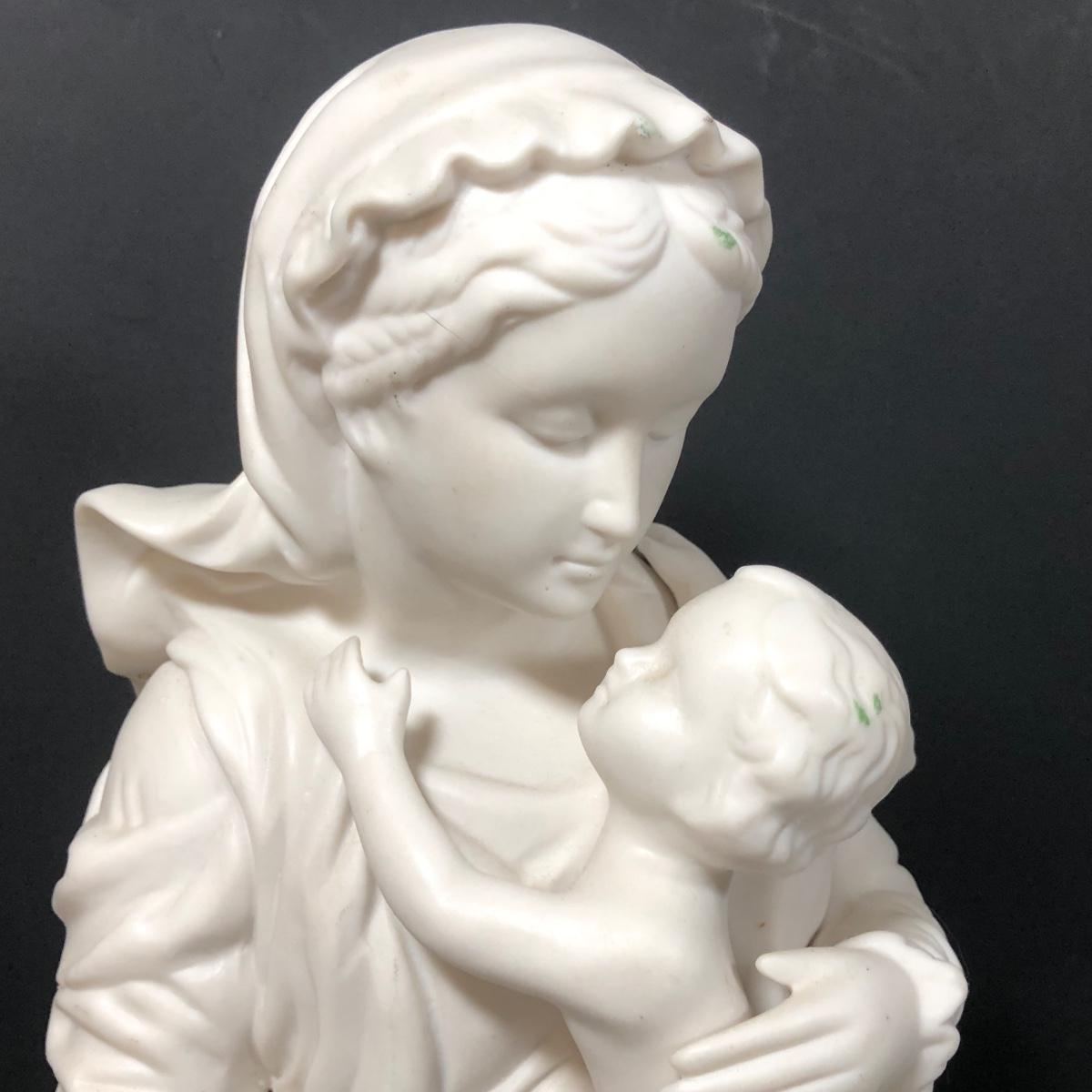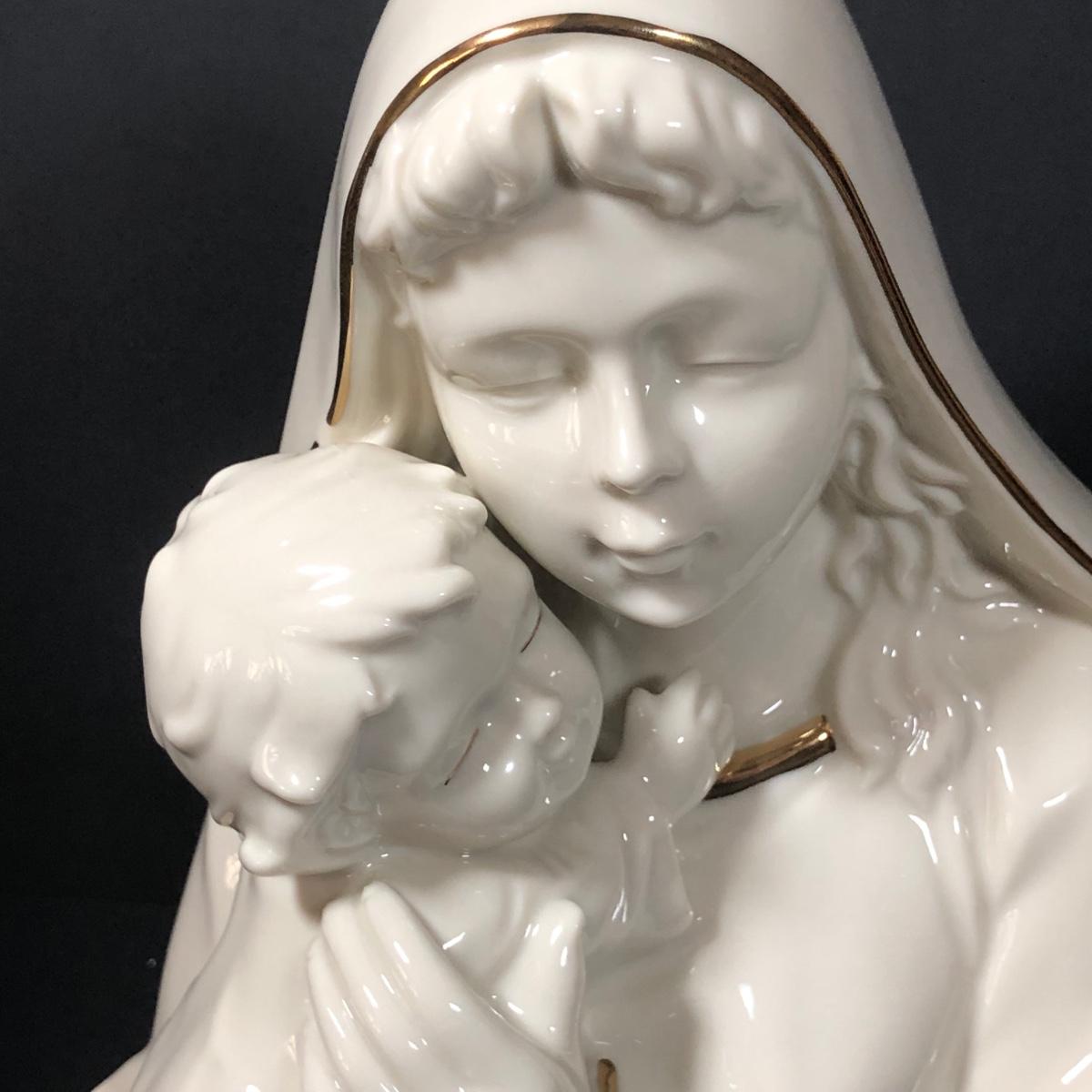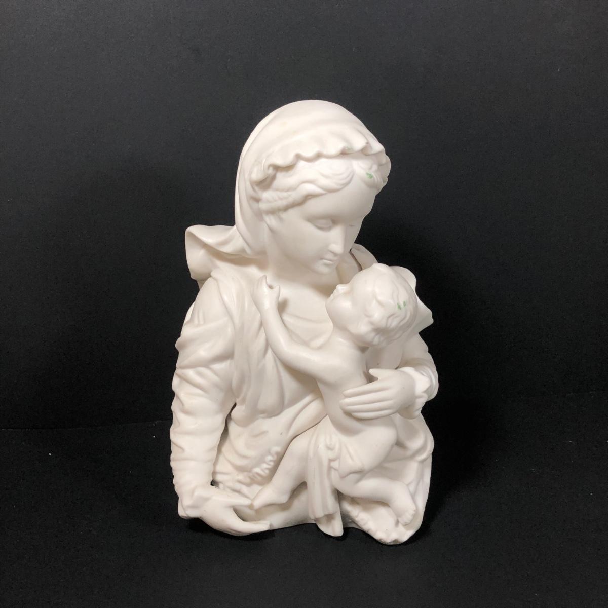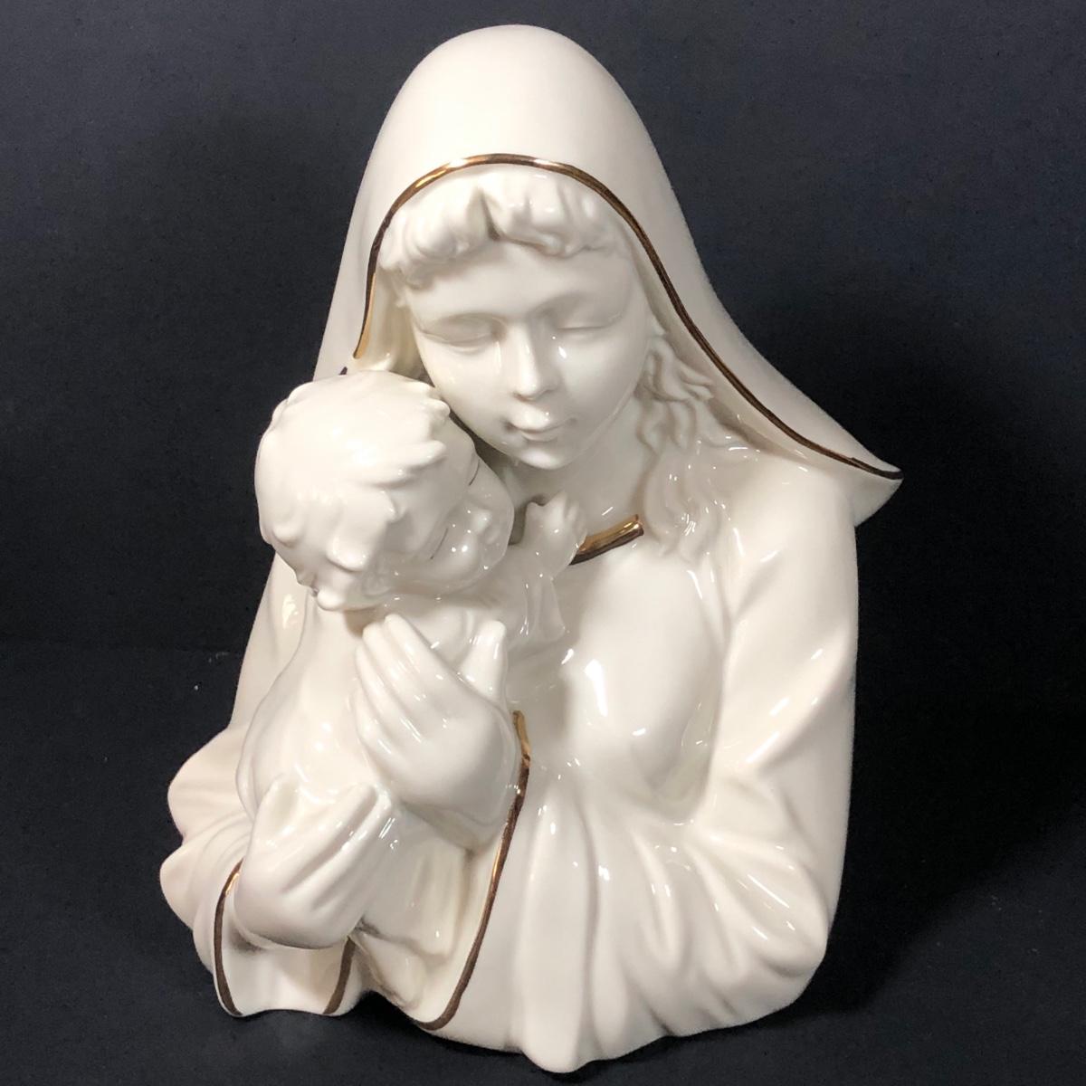 LOT 402G: Religious Porcelain - Vintage Oxidized Virgin Mary & Jesus Statue, Mikasa Accents Madonna & Child Figure & Madonna w/ Child Planter
