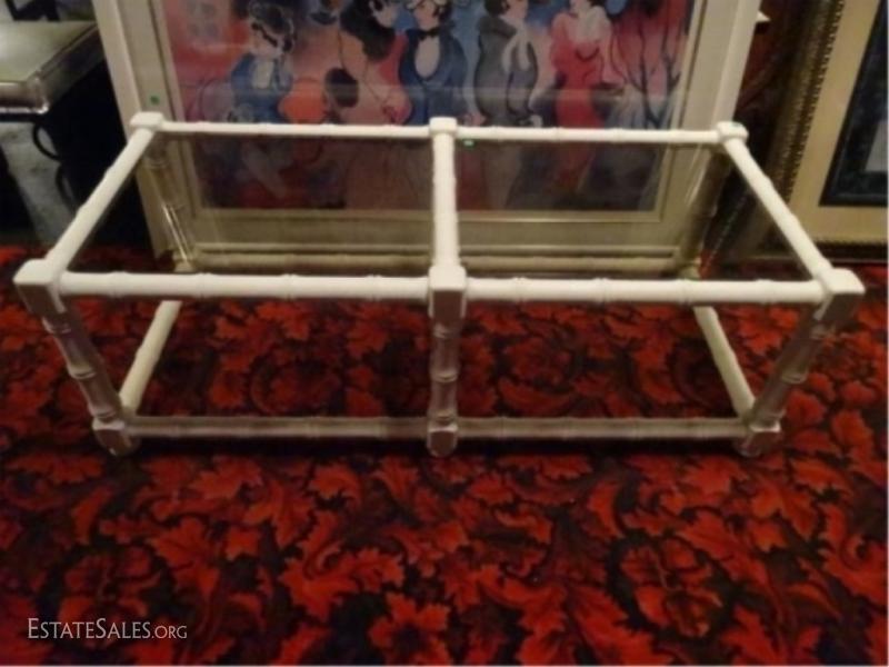 LOT 22A: MID CENTURY FAUX BAMBOO COFFEE TABLE, SMOKE GLASS TOPS