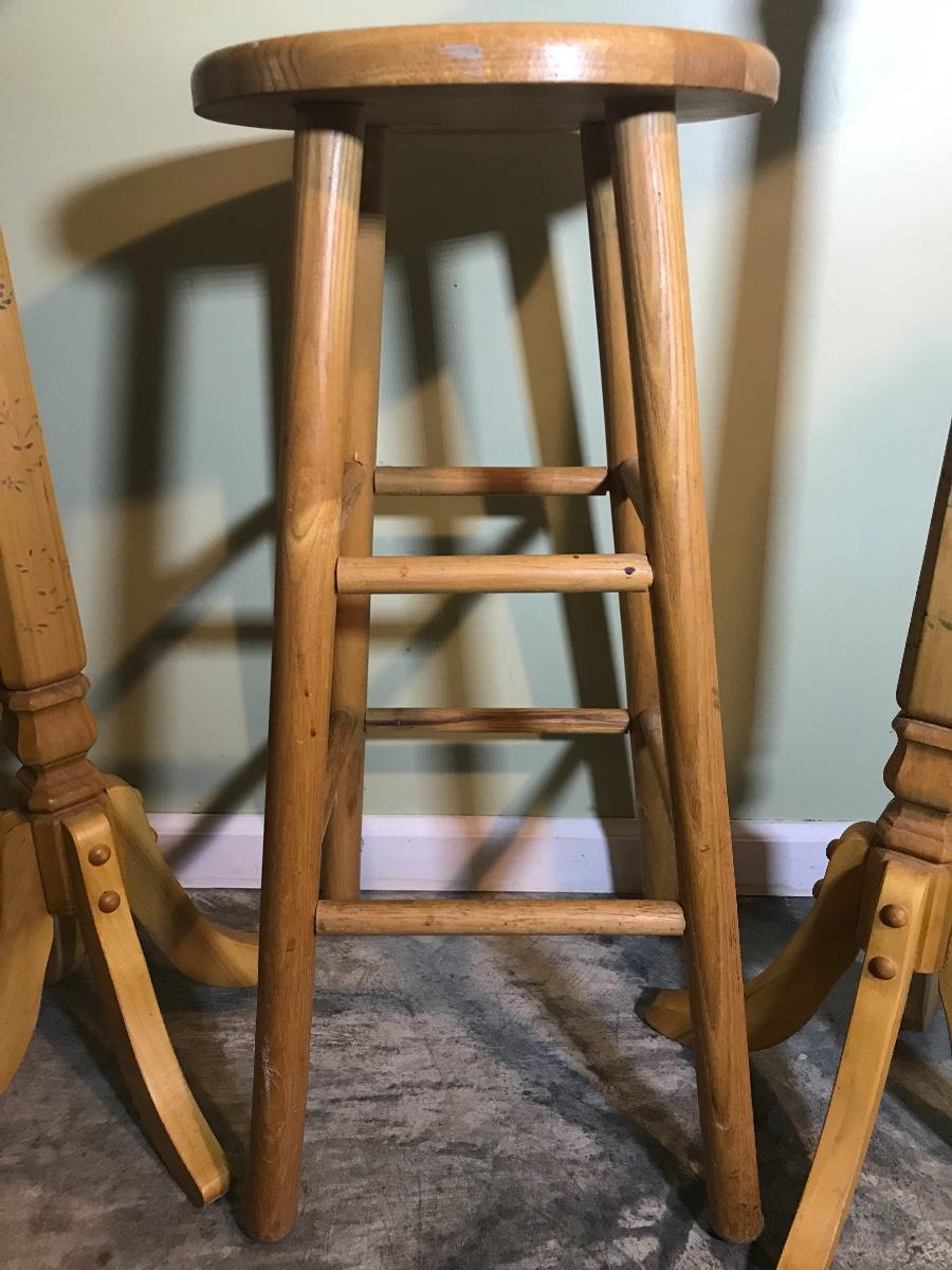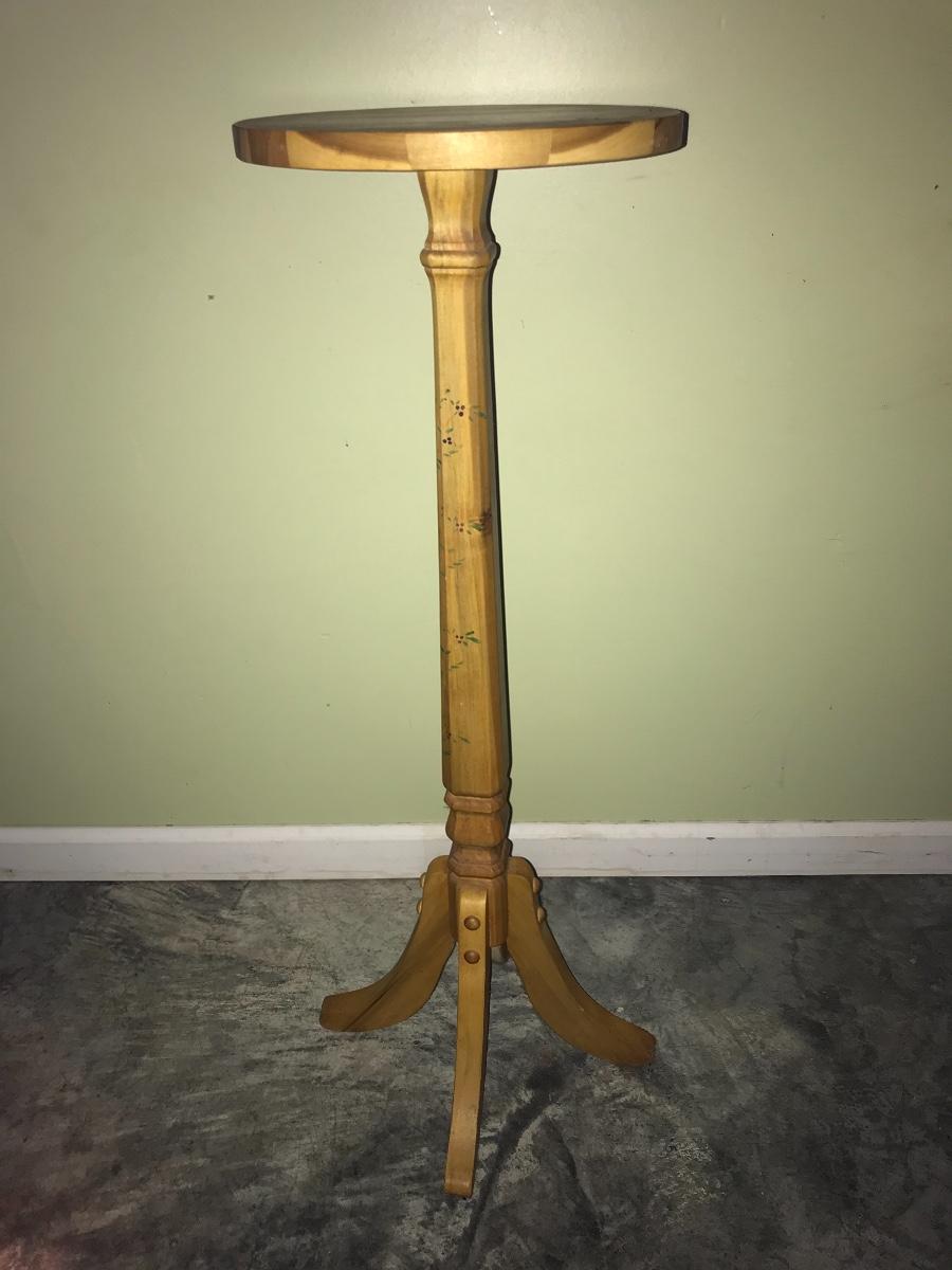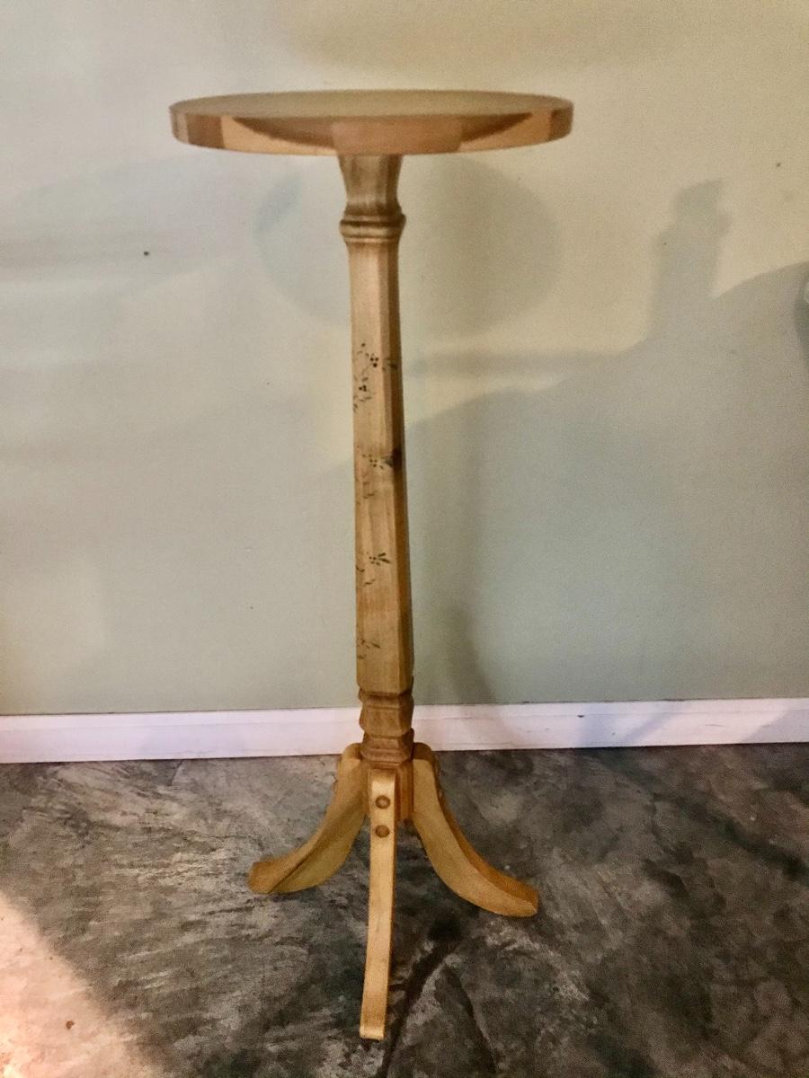 Two wooden plant stands that are hand stained and painted, and a wooden stool, 36 inches high. Please see all pictures for content of the lot, condition of the lot, and measurements if taken. Pictures are the best representation of the items listed and items are untested unless indicated in description. Thank you for looking and have fun bidding!