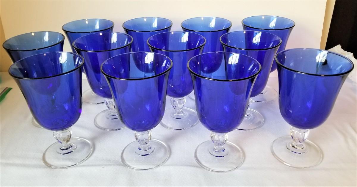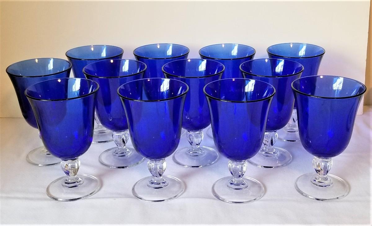 Nice set of 12 Cobalt Blue Water goblets - good condition - each stands 6.5" tall.
