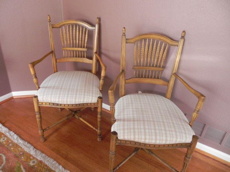 2 OVERSIZED ARMED CHAIRS WITH UPHOLSTERED PADDED SEATS