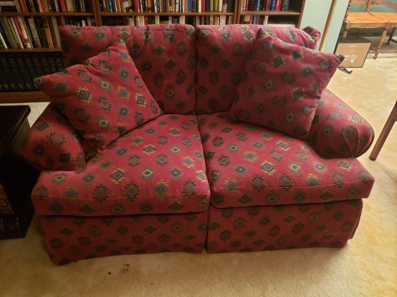 Howard Lorton Galleries Down Filled Loveseat with 2 throw Pillows. 56"x37"x34"