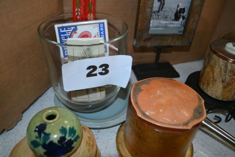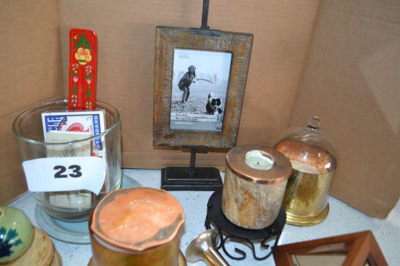 LOT 23. HOME DECOR ITEMS INCLUDING TONIGHT SHOW COASTERS