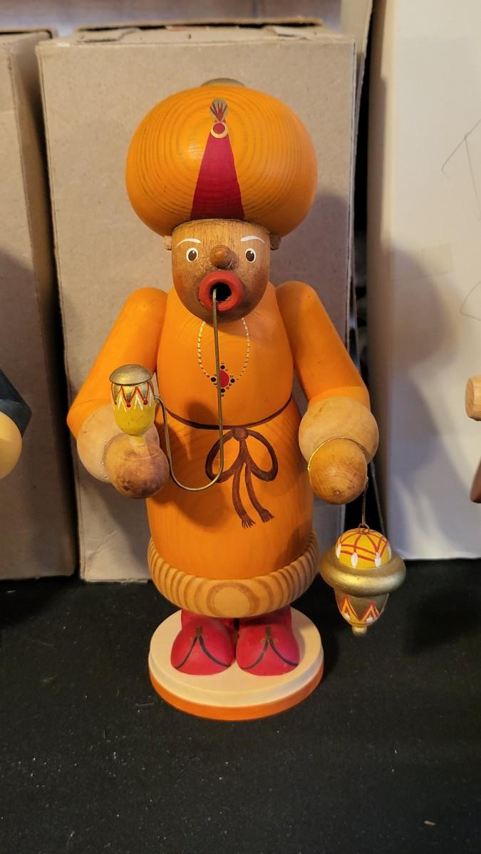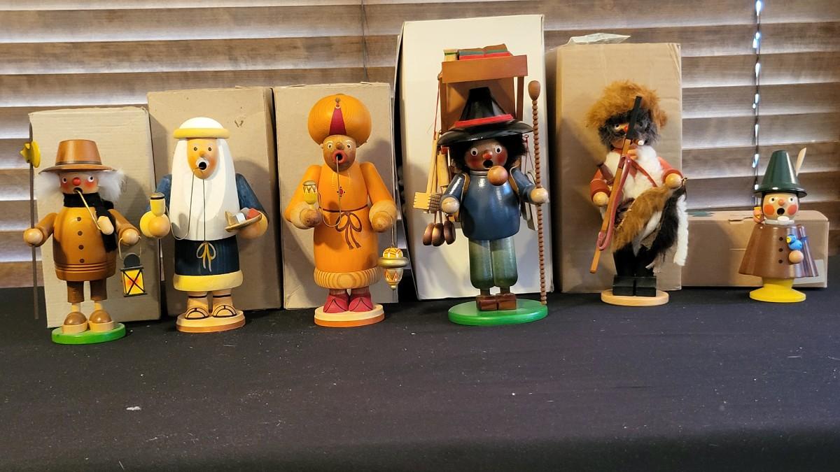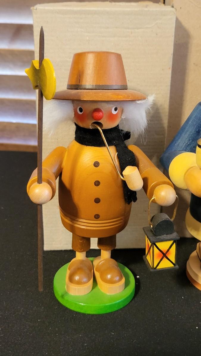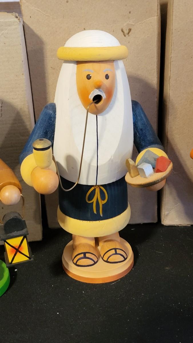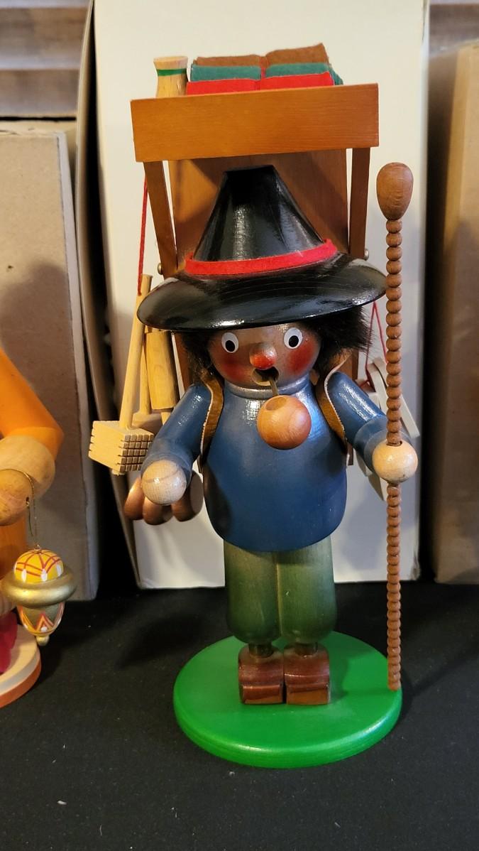 Included in this lot - 2 Holzkunst smokers, 2 Erzgebirgische, 1 Steinbach & 1 Christian Ulbricht. All in good condition. All stored in original boxes, except for 1, for the last 15 years! Measure 6" to 11". The traveling salesman is valued between $150 to $300!