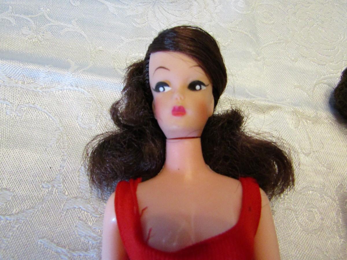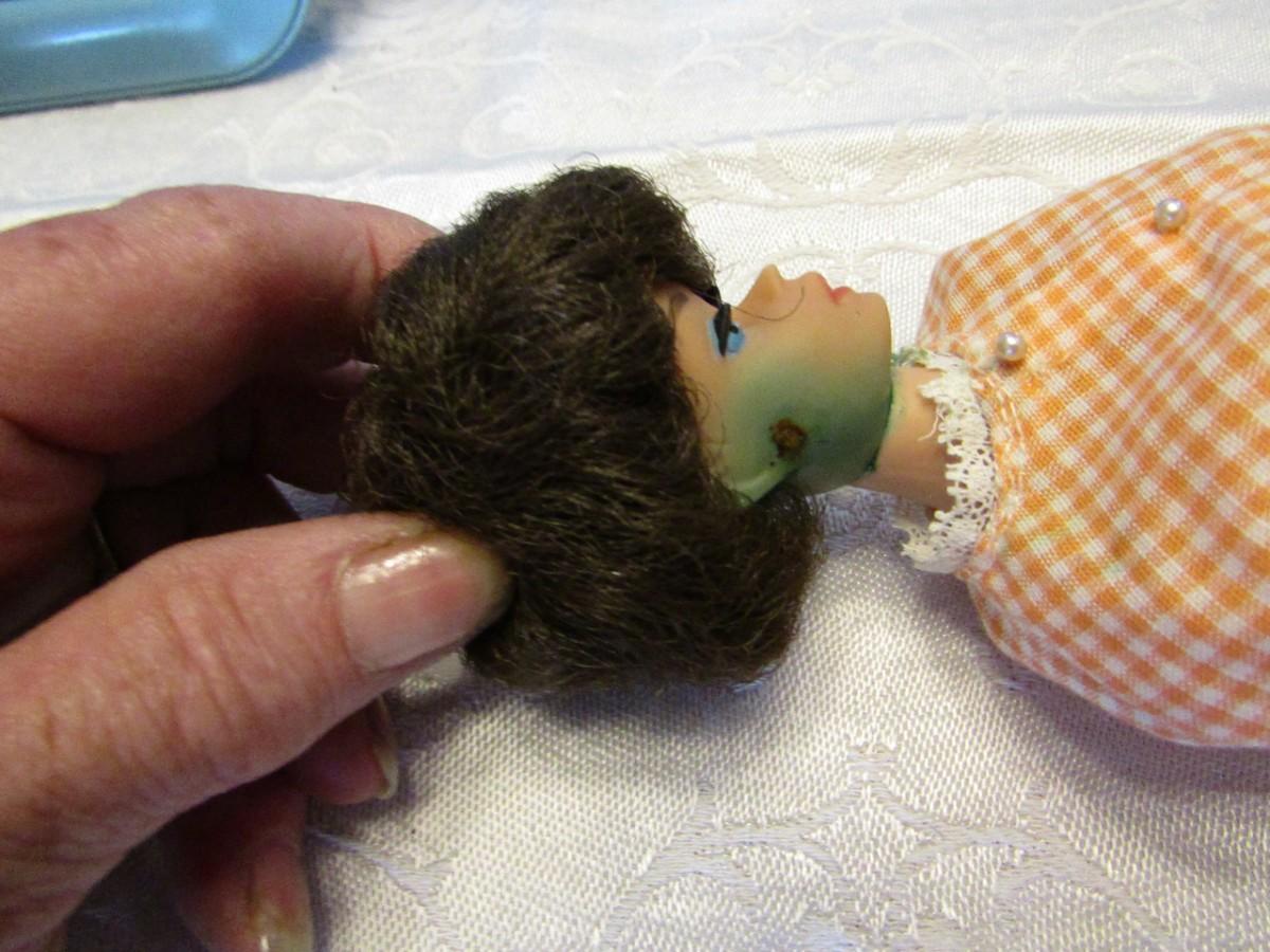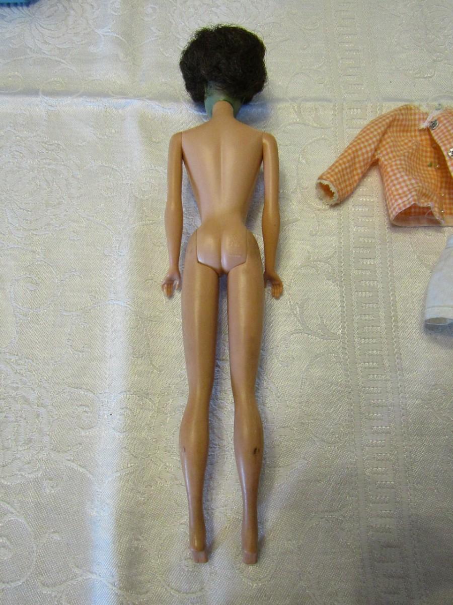 1962 BUBBLE CUT BARBIE (SHE'S THE REAL DEAL!) HER EARRINGS HAVE LEFT TURNED HER HEAD GREEN BUT I DID SOME RESEARCH AND THIS IS A COMMON PROBLEM THAT CAN BE FIXED. GO TO WWW.HOWTOCLEANANYTHING.COM AND SEARCH FOR REMOVING STAIN ON BARBIES FROM THEIR EARRINGS (SOMETHING LIKE THAT) THEY SAID IT CAN COMPLETELY REMOVE THE STAIN OR PRACTICALLY REMOVE