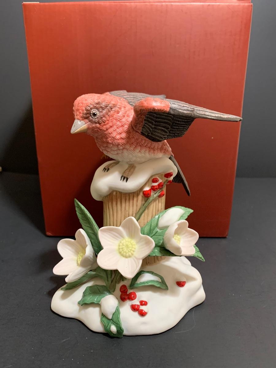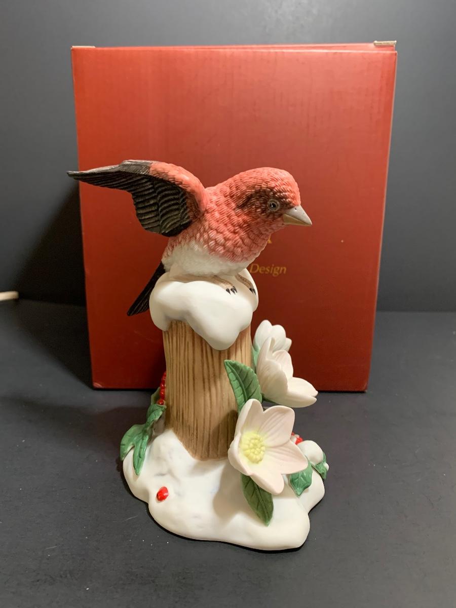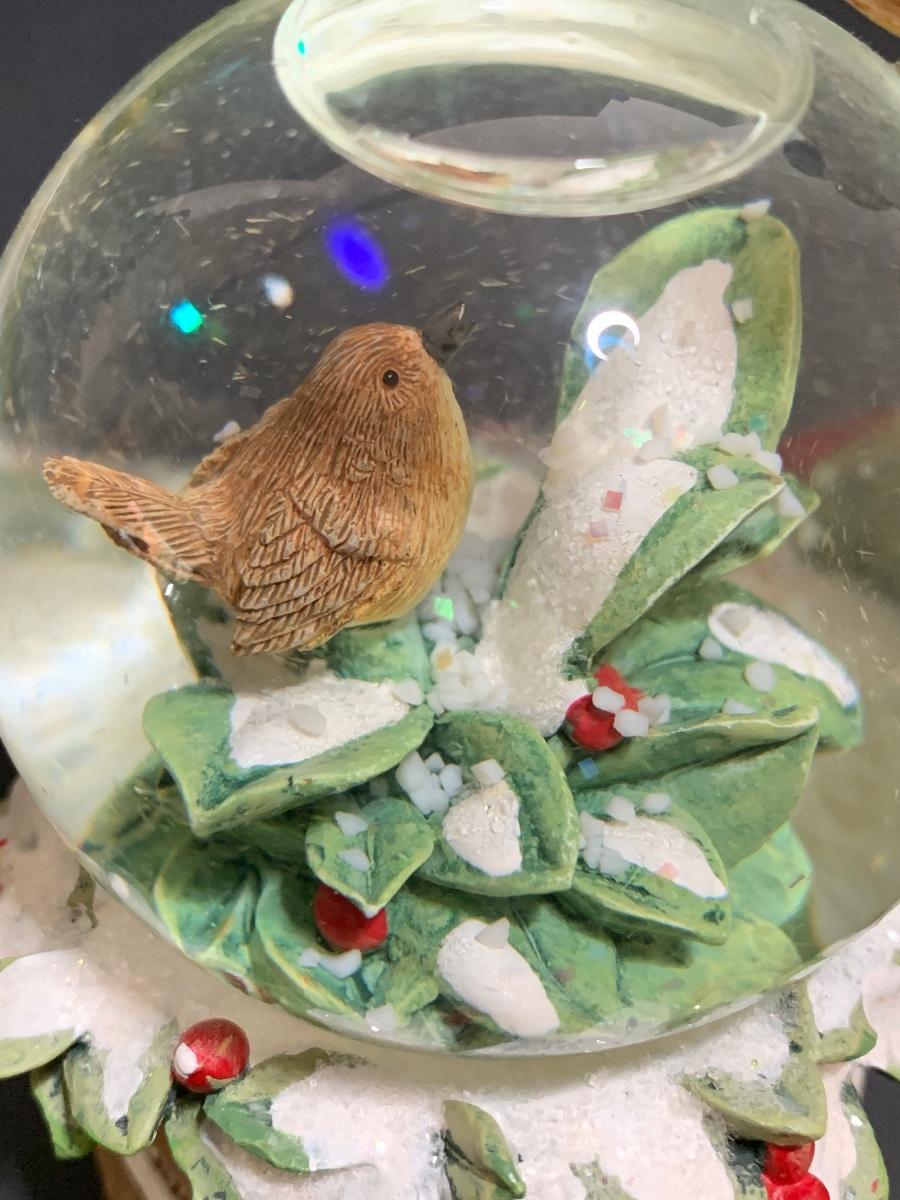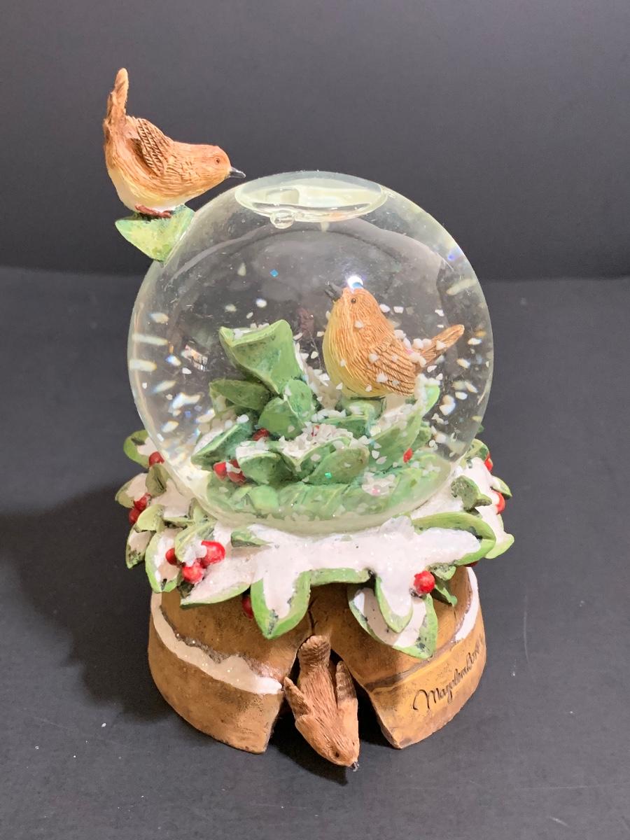 Vintage collection of Holiday Decor: Vintage working, handmade ceramic tree, Marjolein Bastin Hallmark Snowglobe, and a Lenox Christmas Purple Finch (with box)