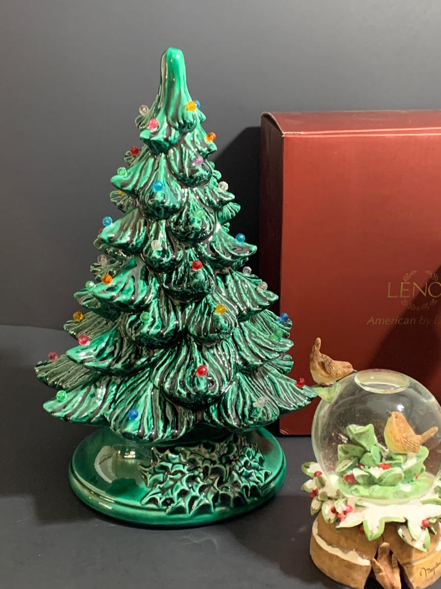 Lot 24: Vintage Ceramic Christmas Tree, Lenox, Hallmark Snow Globe