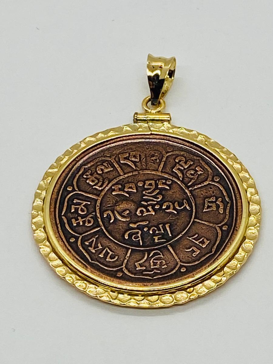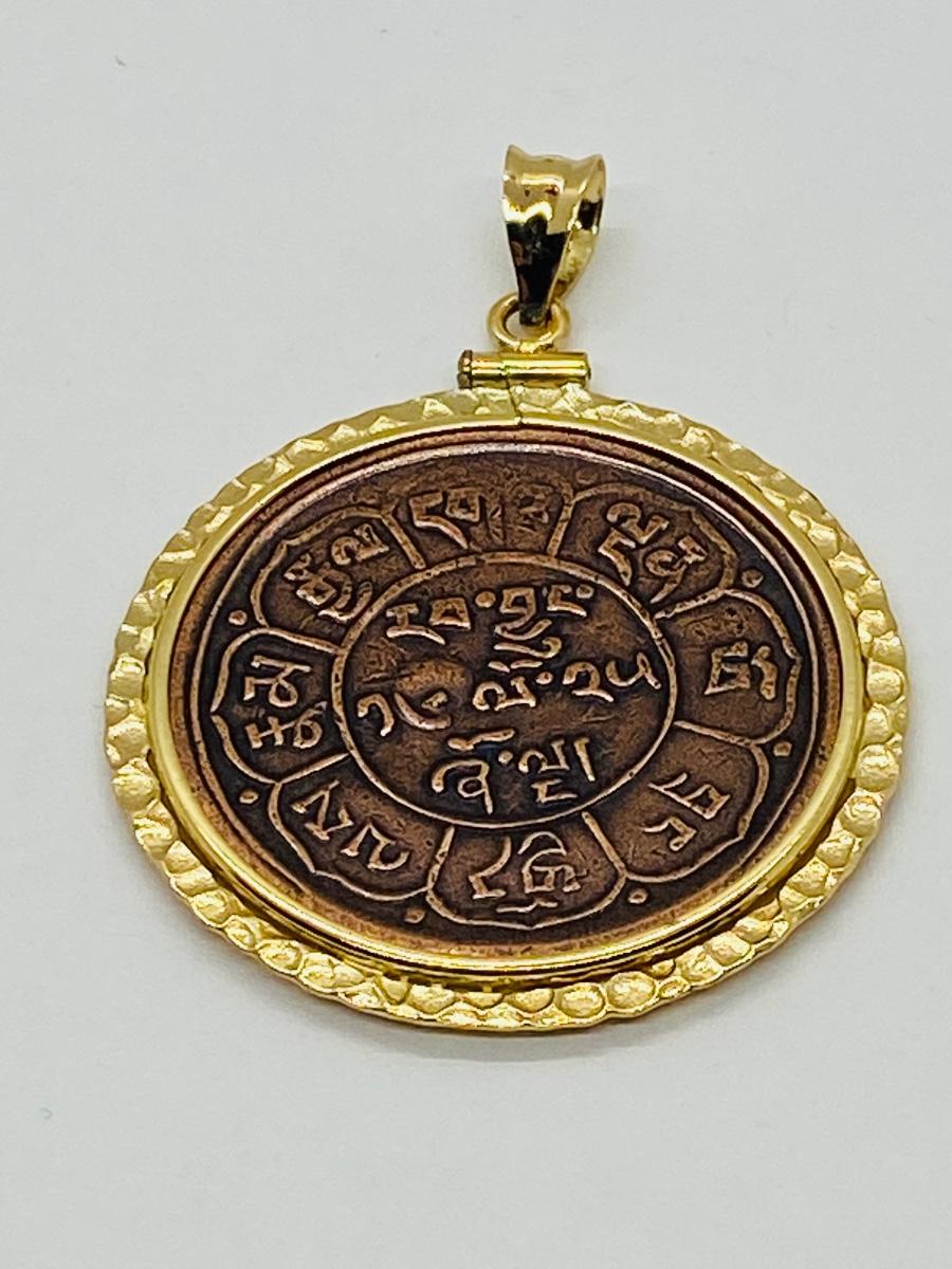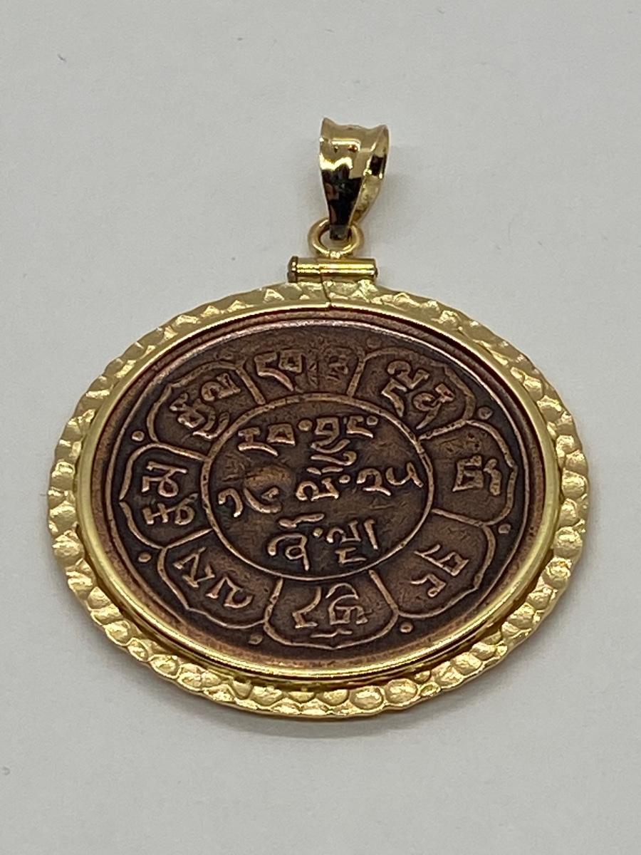 Lot 23: Tibetan 5 Sho Coin Set in 18k Yellow Gold Pendant