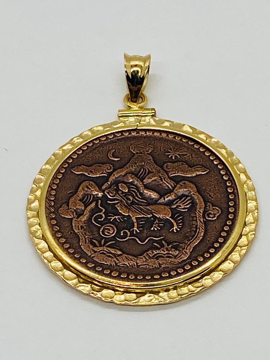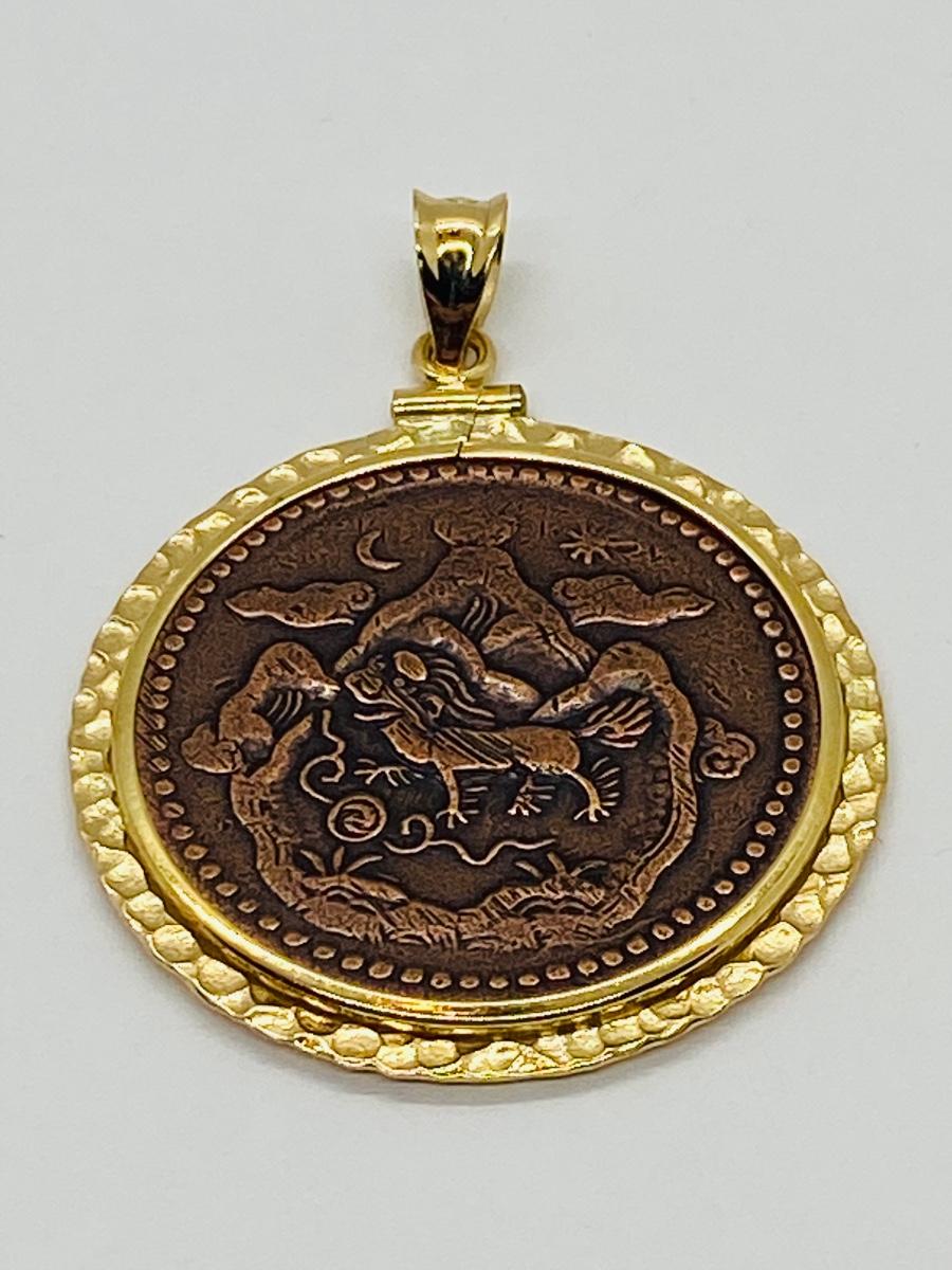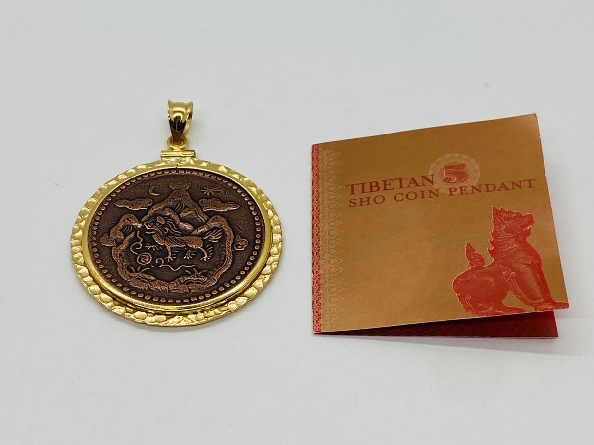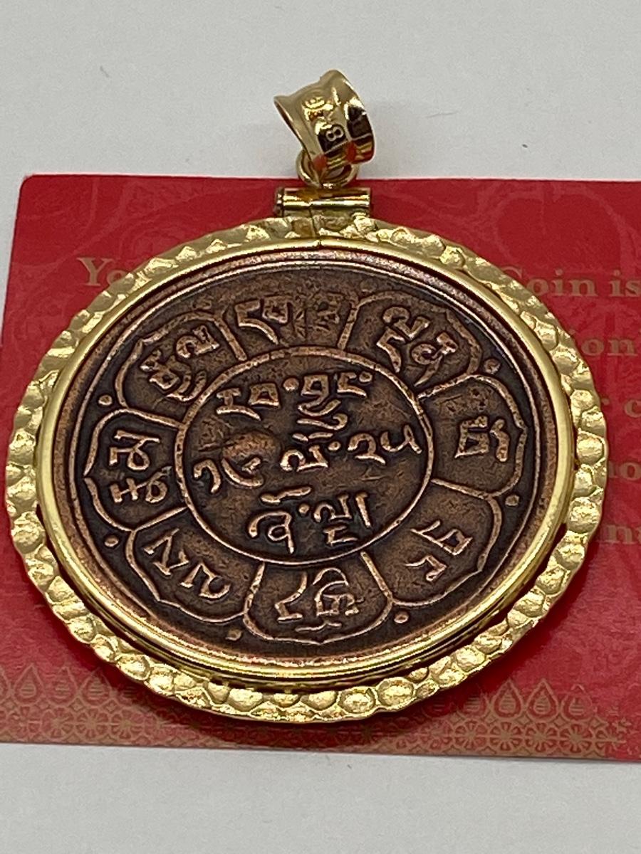 Lot 23: Tibetan 5 Sho Coin Set in 18k Yellow Gold Pendant