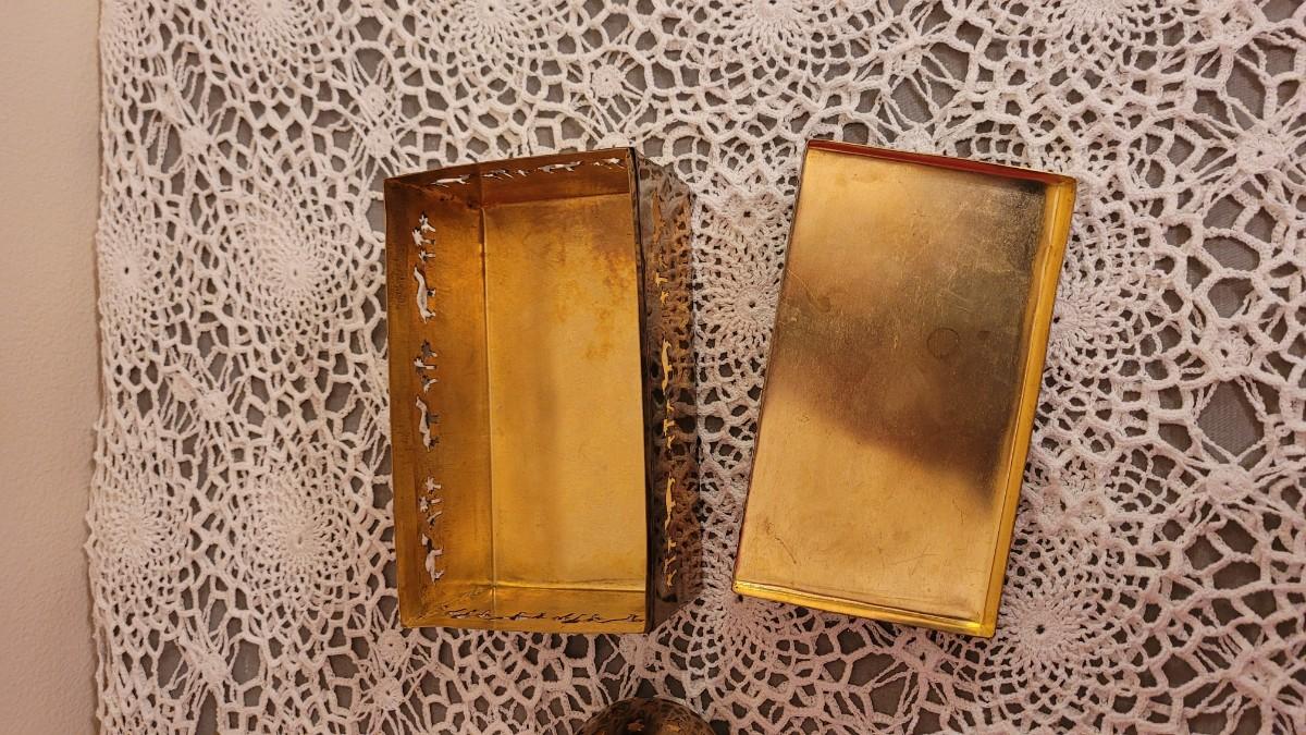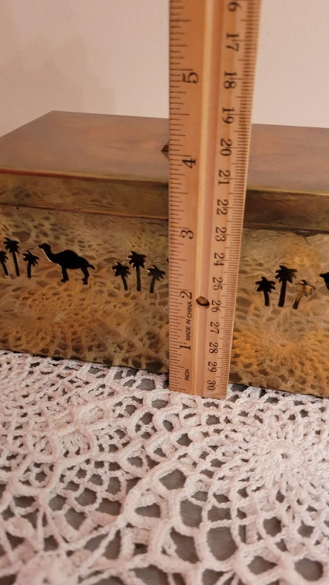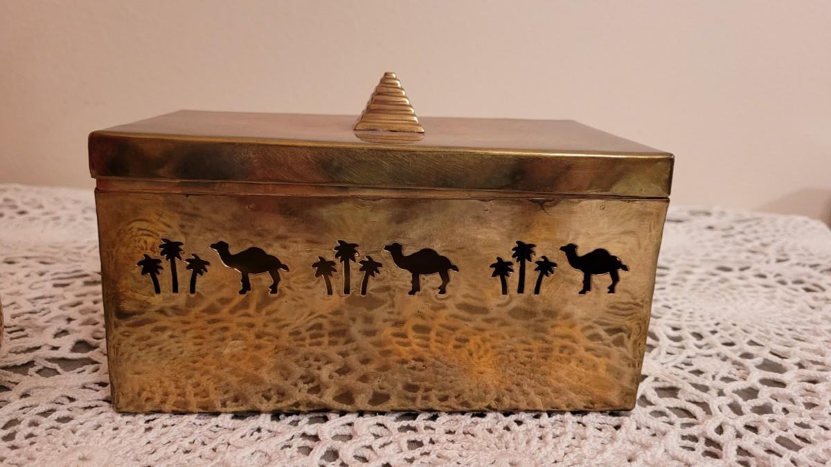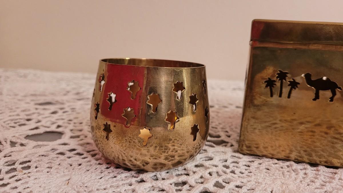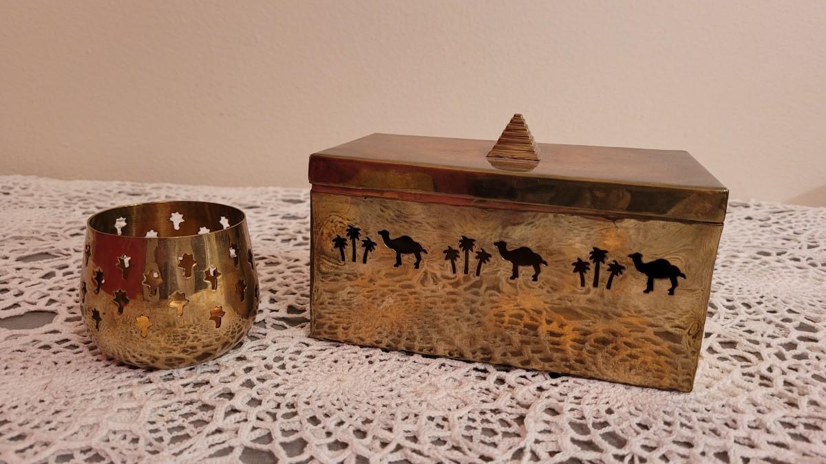 Lot 23: Vintage Brass Box with Camels and Palms and Candleholder with Palms