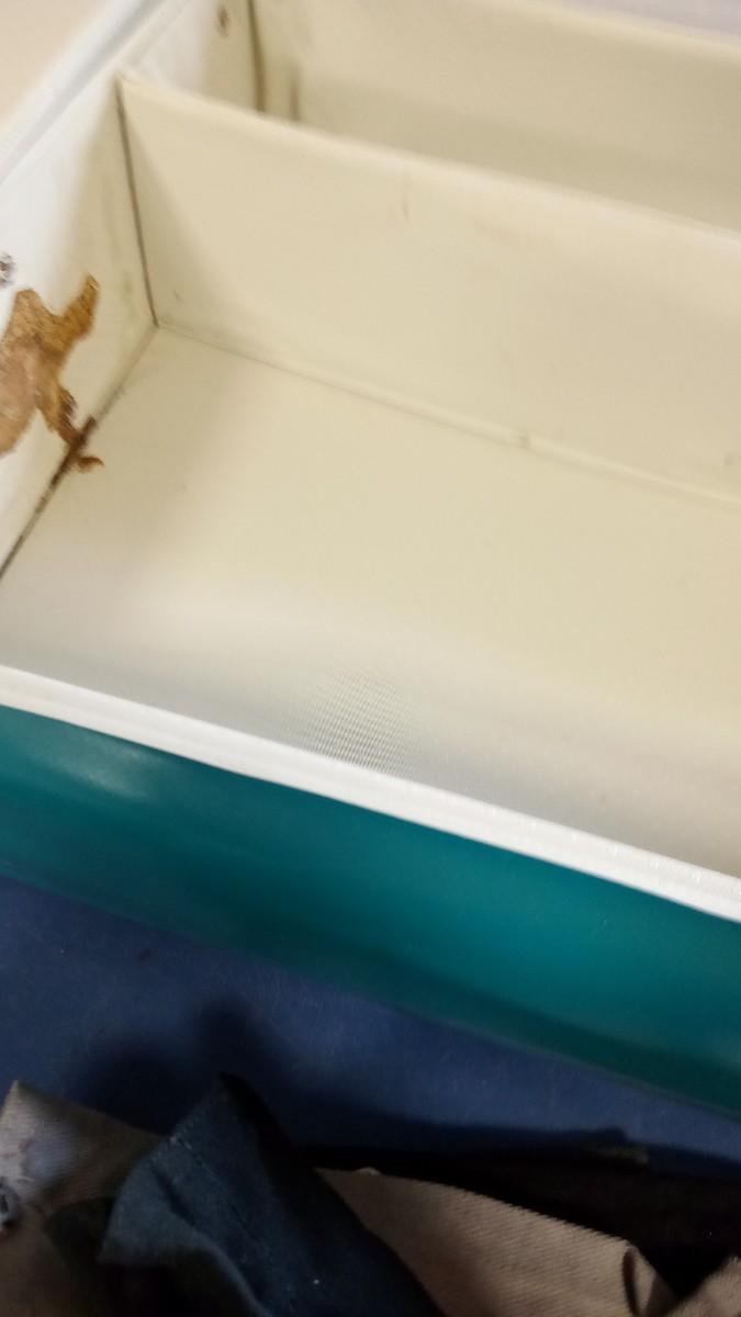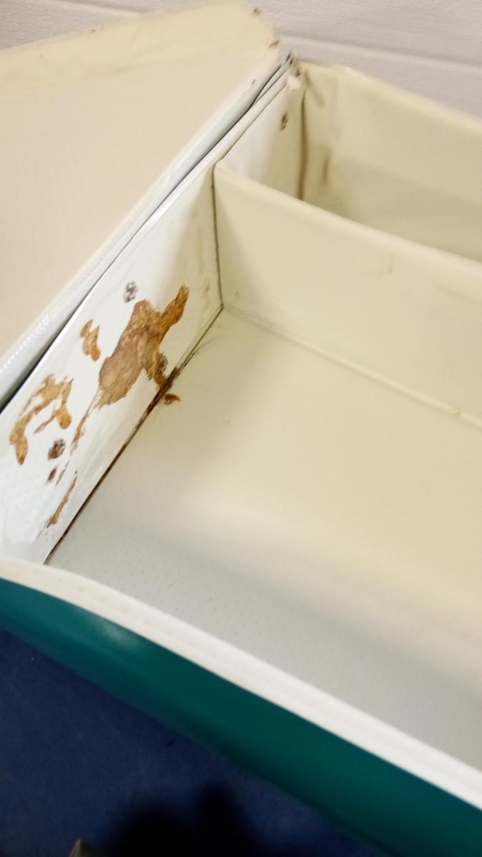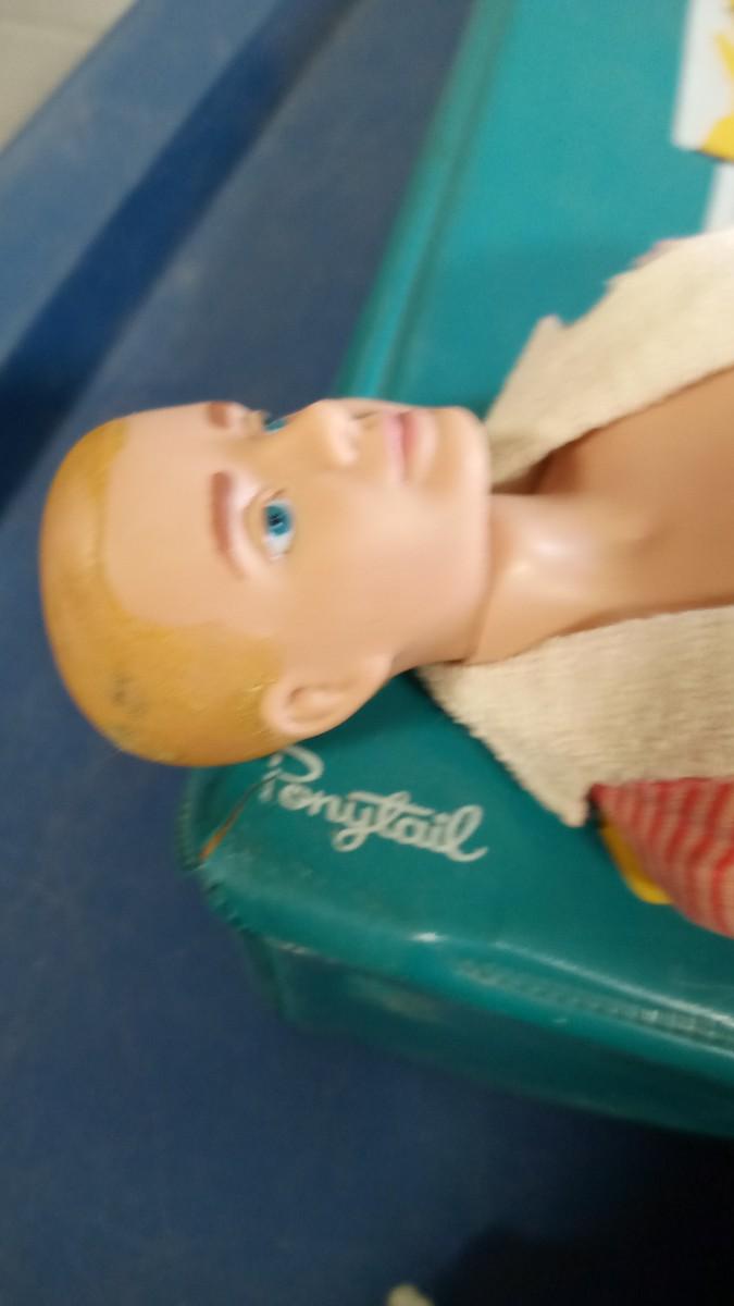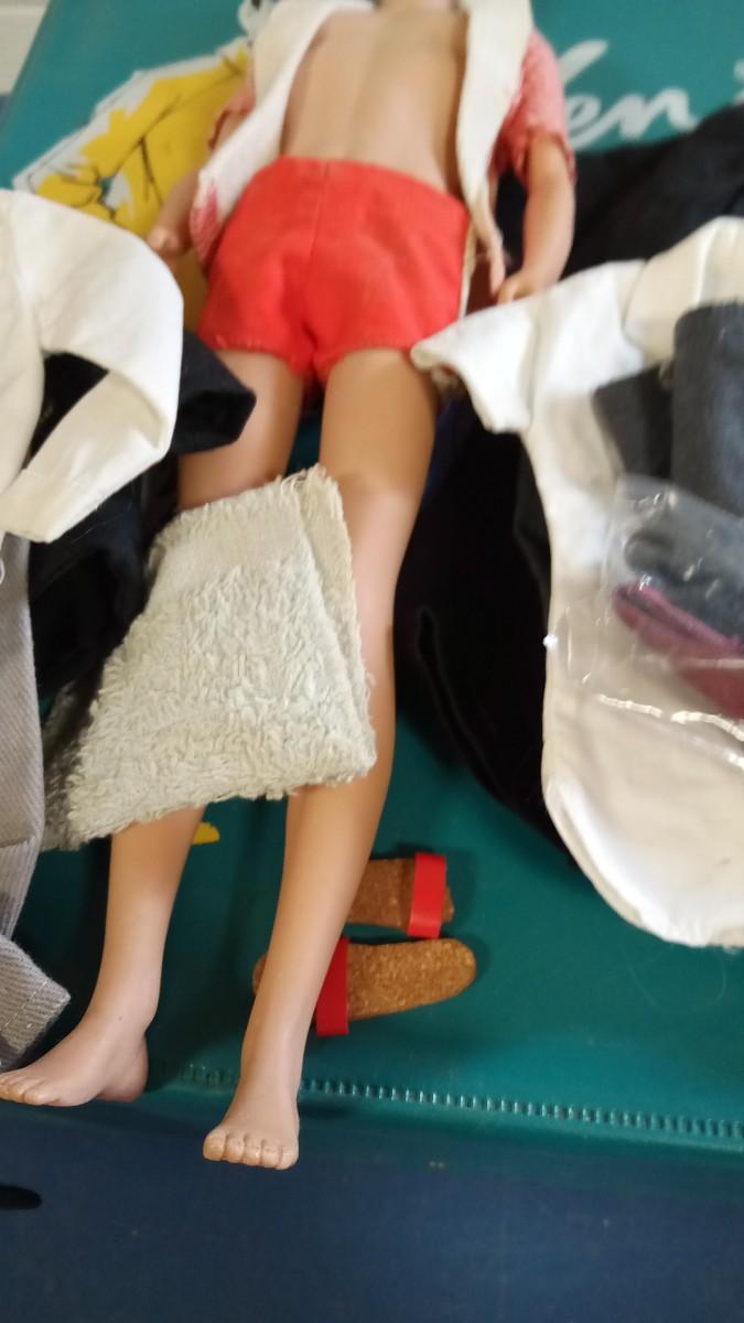 KEN DOLL IS LOSING HIS HAIR, THE CASE HAS A STAIN ON THE INSIDE, MANY CLOTHES ARE MARKED