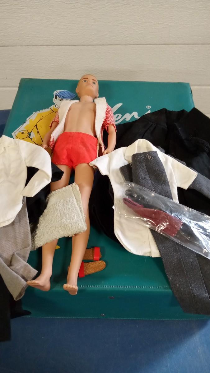 LOT 23  VINTAGE KEN DOLL WITH CASE AND CLOTHES