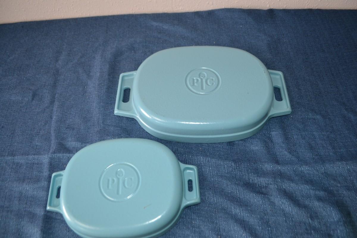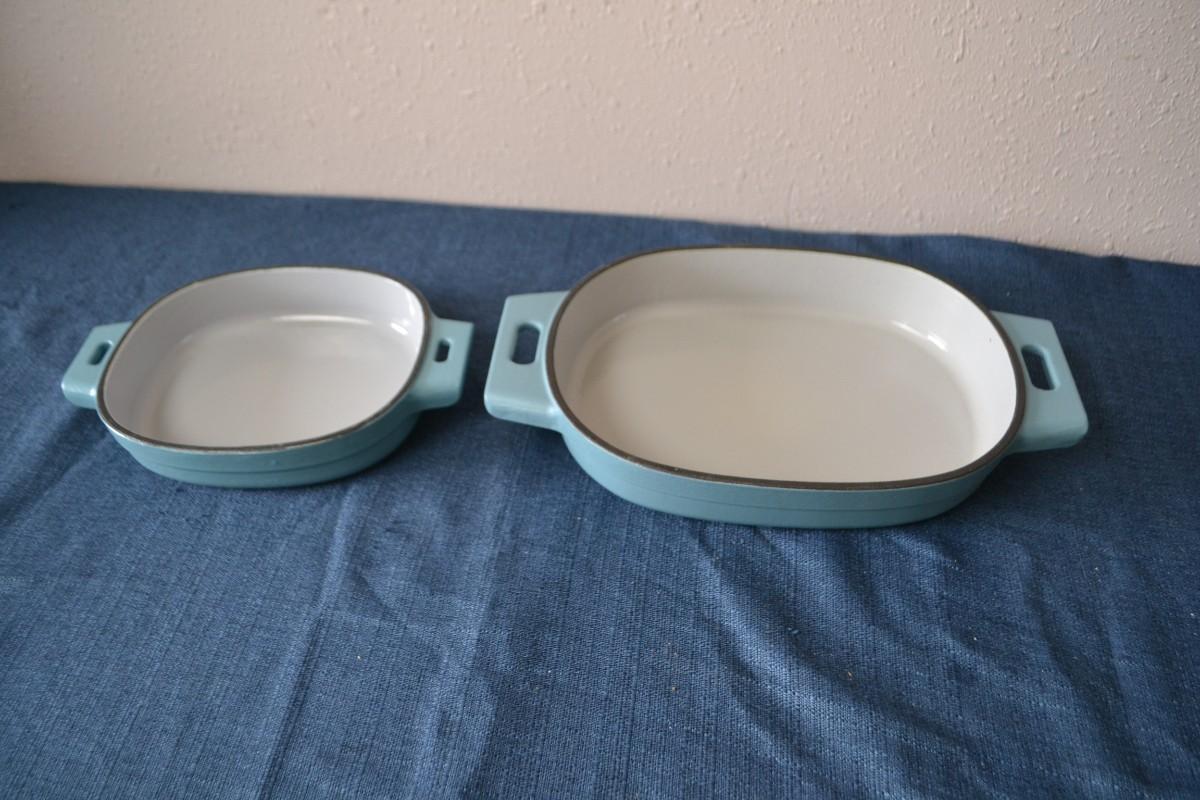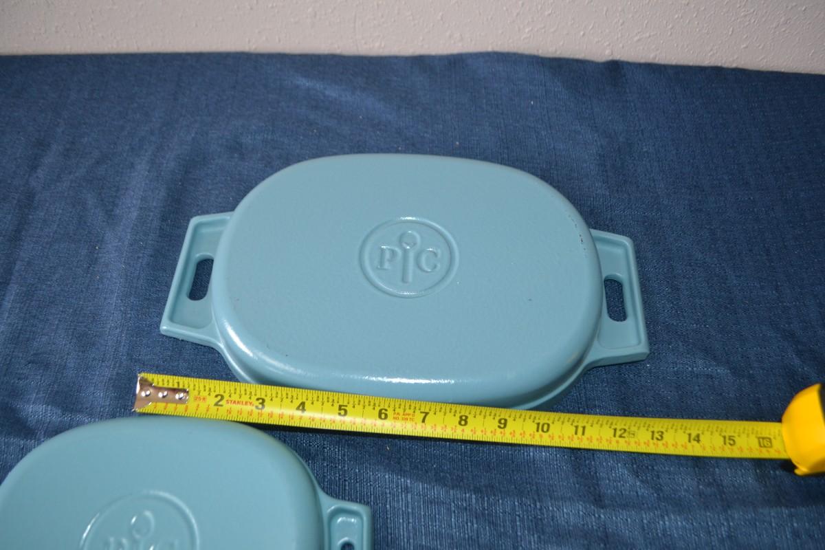 LOT 23 TWO PAMPERED CHEF BLUE ENAMELED CAST IRON PANS