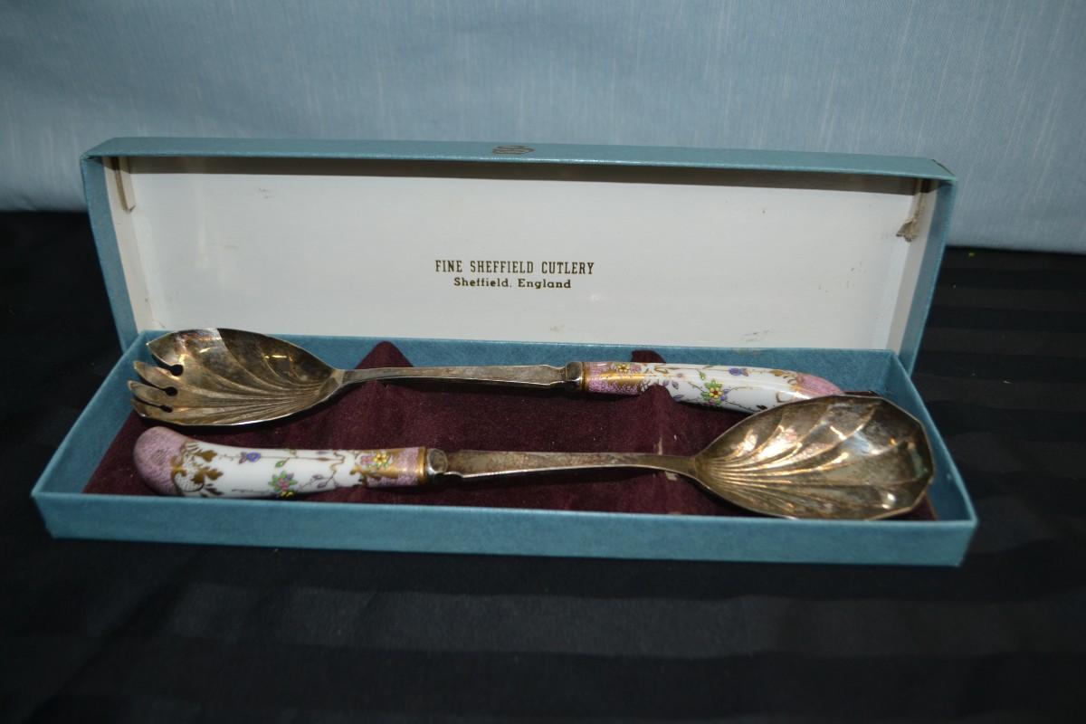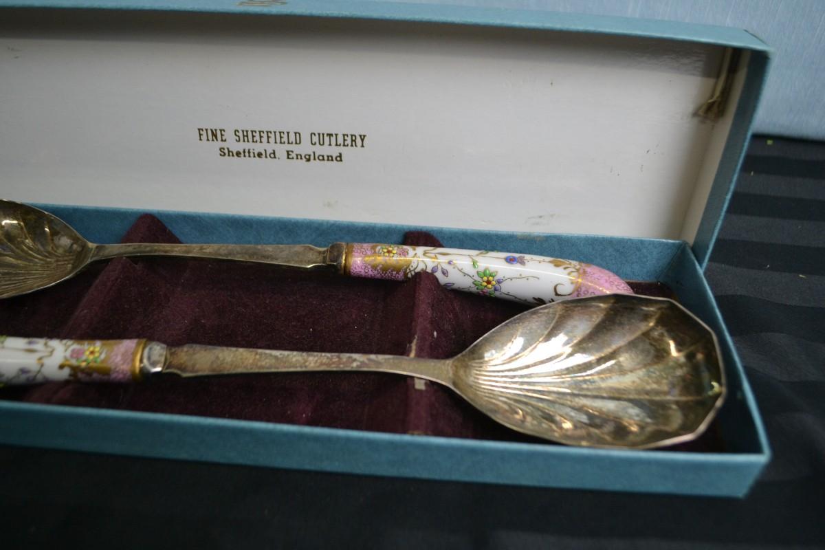 SHEFFIELD CUTLERY SERVING SPOONS WITH BOX