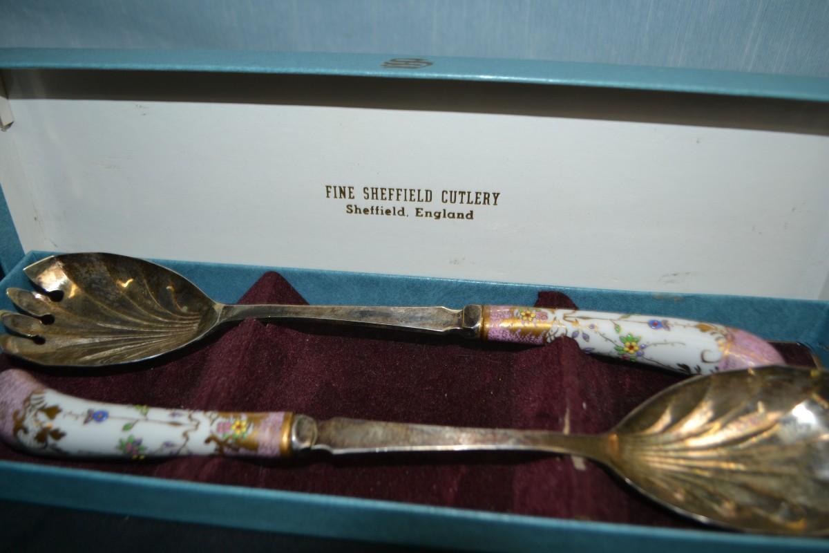 LOT 23. SHEFFIELD CUTLERY SERVING SPOONS WITH BOX