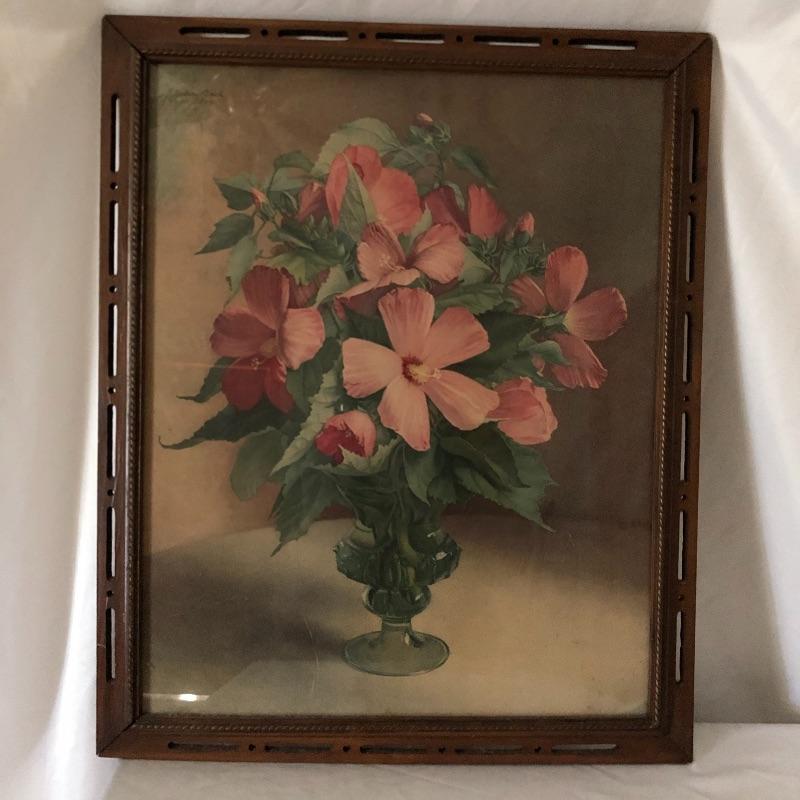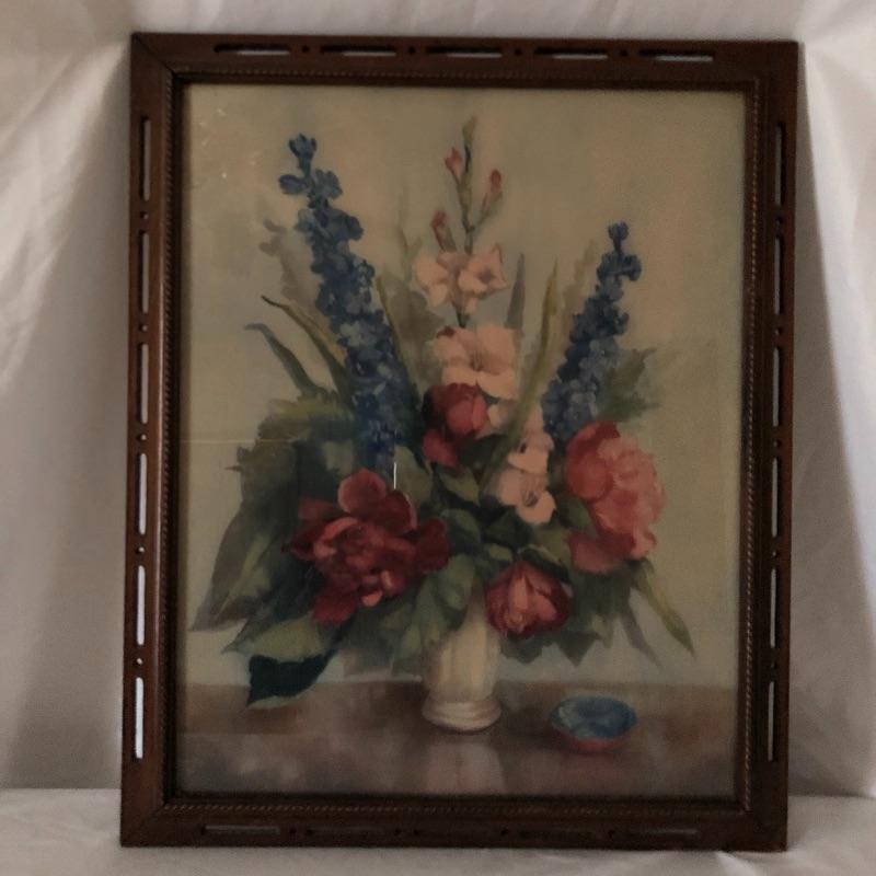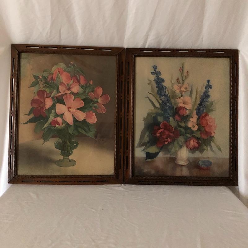 This pair is a great find for the flower lover. Lot includes two signed pieces of artwork with matching, unique wooden frames. Frames measure 18.75” x 23.75” each.