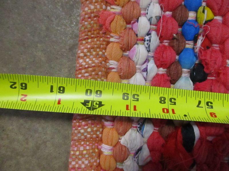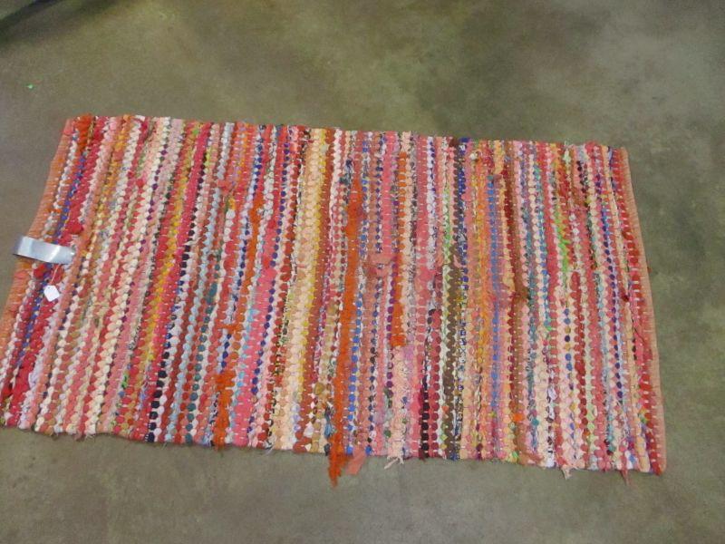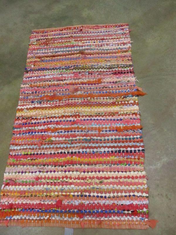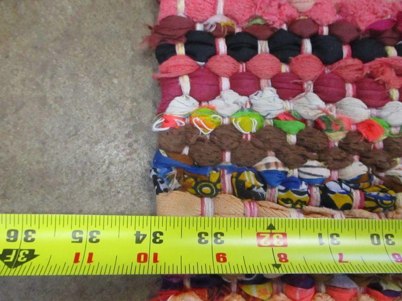 Area Rug Made Out Of Strips Of Material. 34" x 60 1/2". Rug may need cleaning