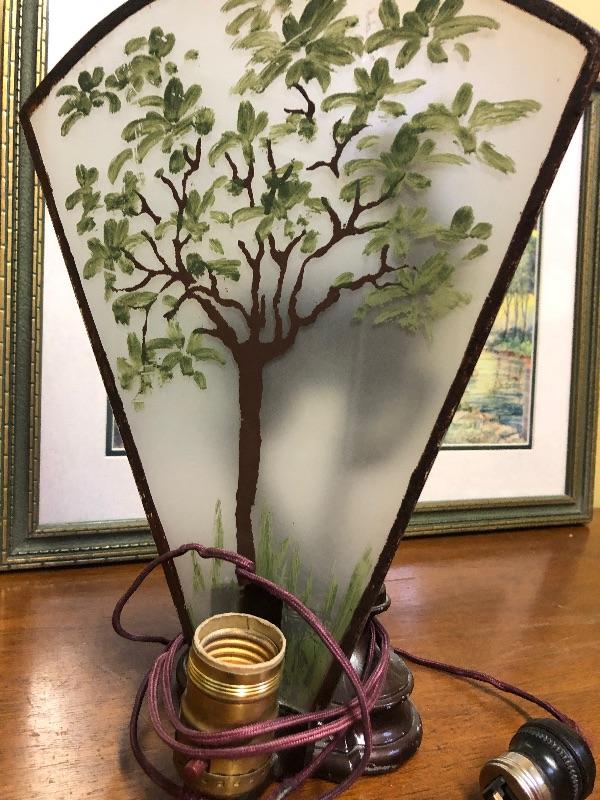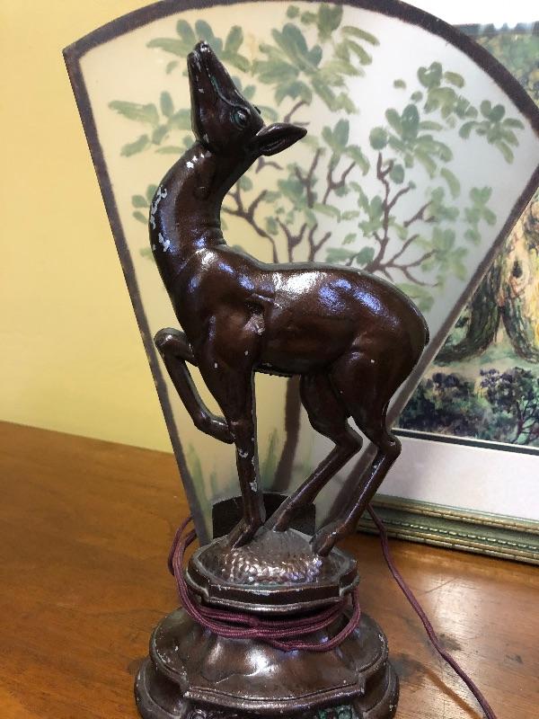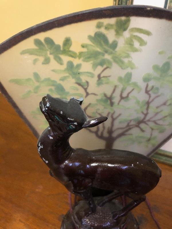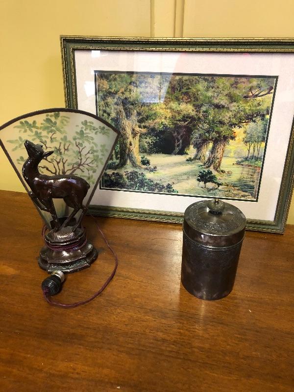 Art Deco lamp hand painted with deer, painting and silver plate humidor : Vintage used condition