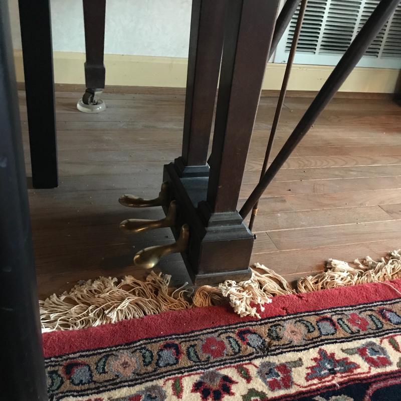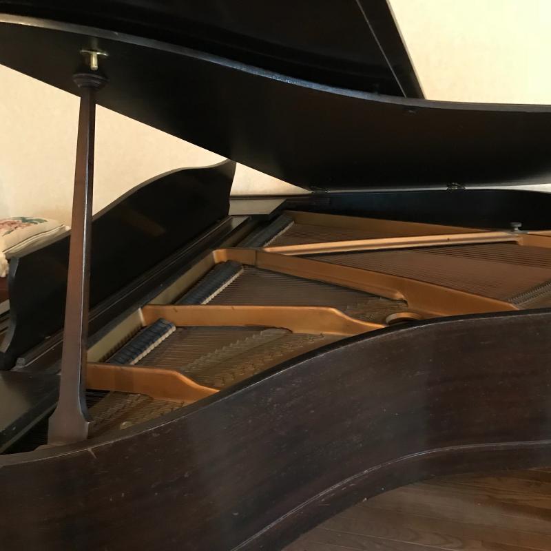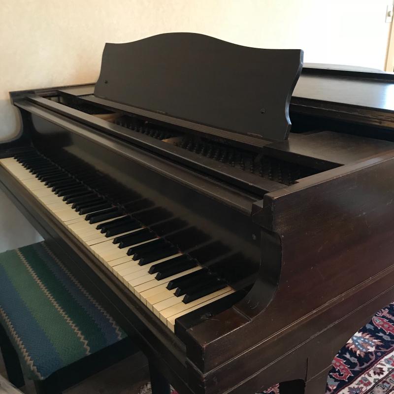This Jewett Boston baby grand piano appears to be in good working condition. One key sticks just a little. Approx. 58”l x 58”w x 37”h when closed, and 56.5”h when open. *Please note that you are soley responsible for the removal and transport of this item wich is located on the main level of the home. . We recommend professional movement of baby grand pianos. No shipping available. Local pickup only in Flat Rock, NC.