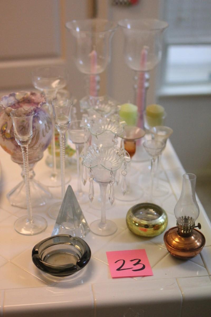 Lot 23 Candle Sticks & Copper Lamp