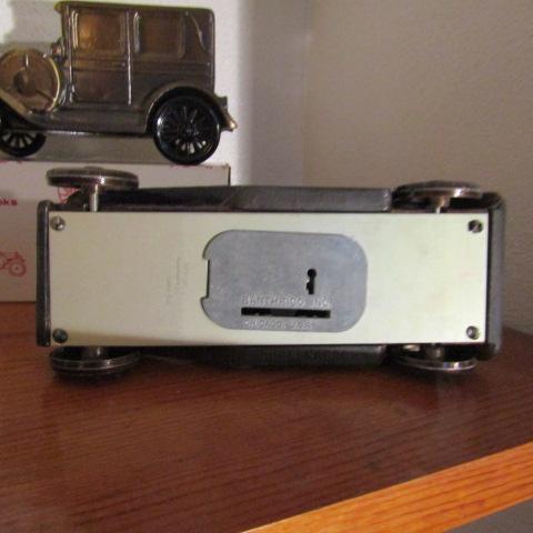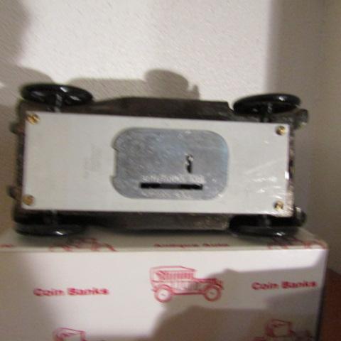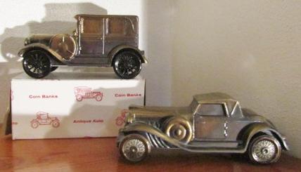 TWO BRASS COLORED CAR BANKS MADE OF METAL