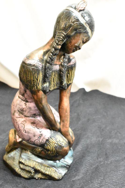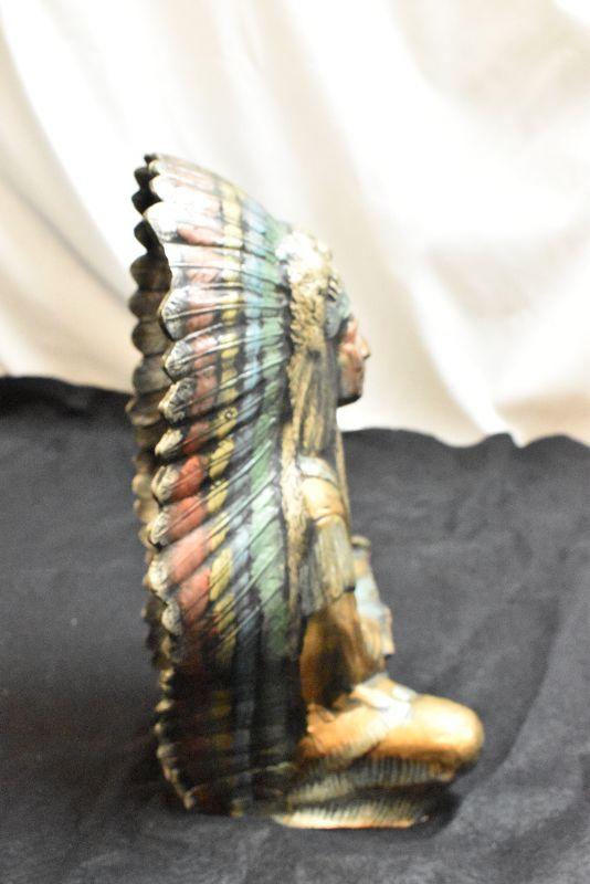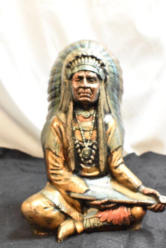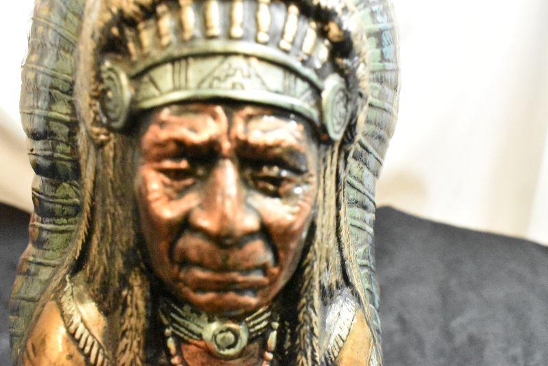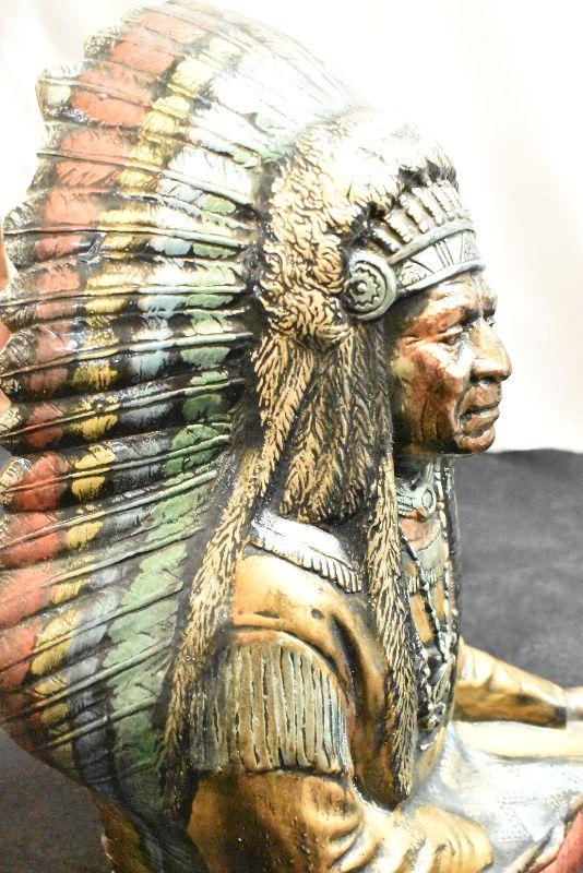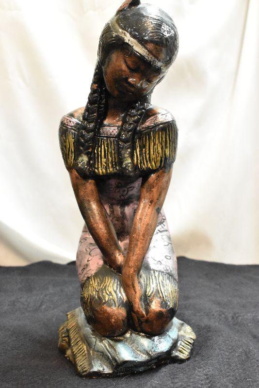 Two Native American chalk ware figurines that are 13 inches tall. . Very detailed and beautifully painted. About 11 inches tall.