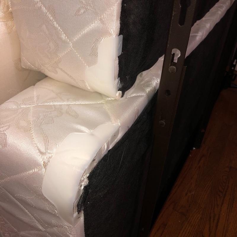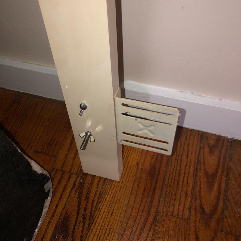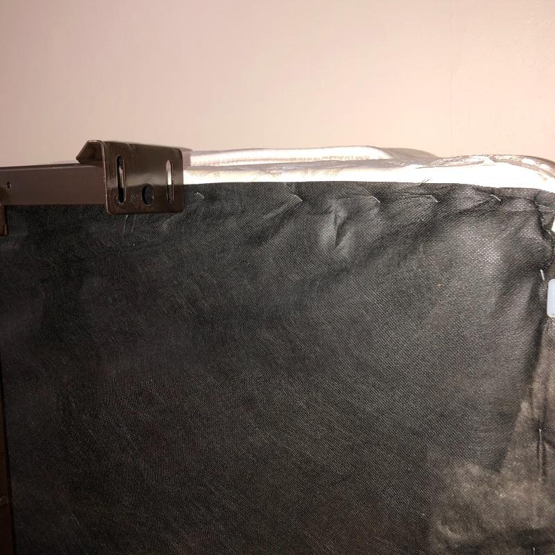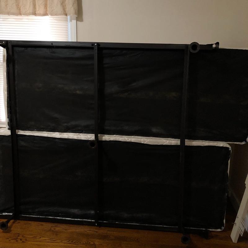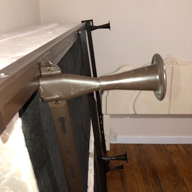 This queen bed frame measures 60” x 71”. It comes with a beautiful white Pressed wood headboard, measuring 62” x 46”. This headboard and bedframe make a beautiful match and will look lovely in any room. Local pickup only. Queen mattress and two single spring sets free to max bidder if interested.