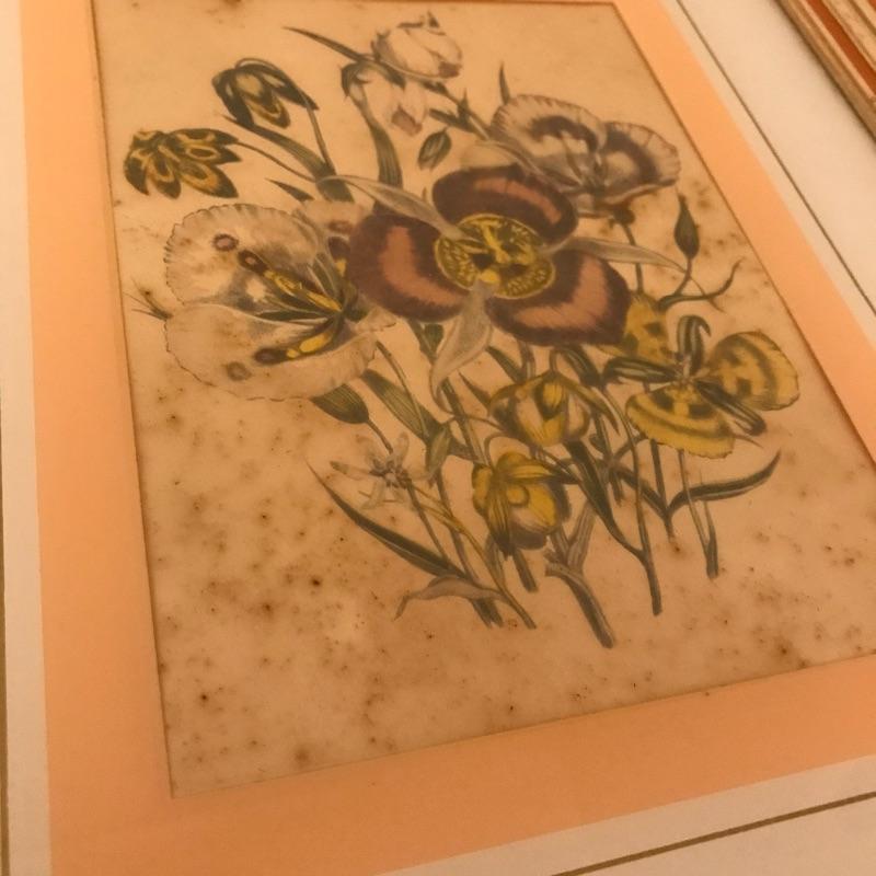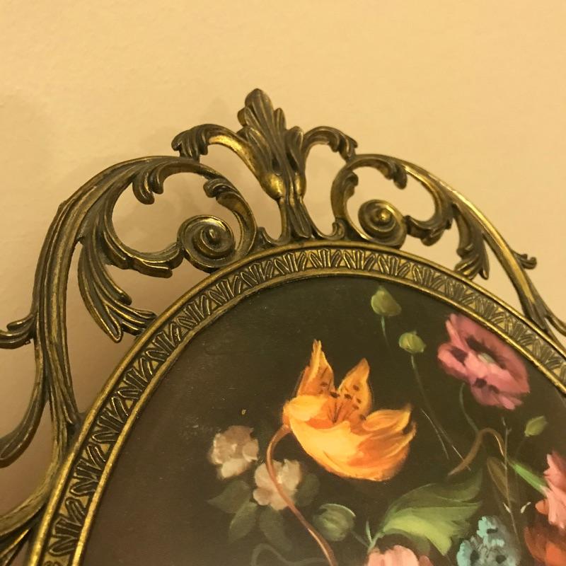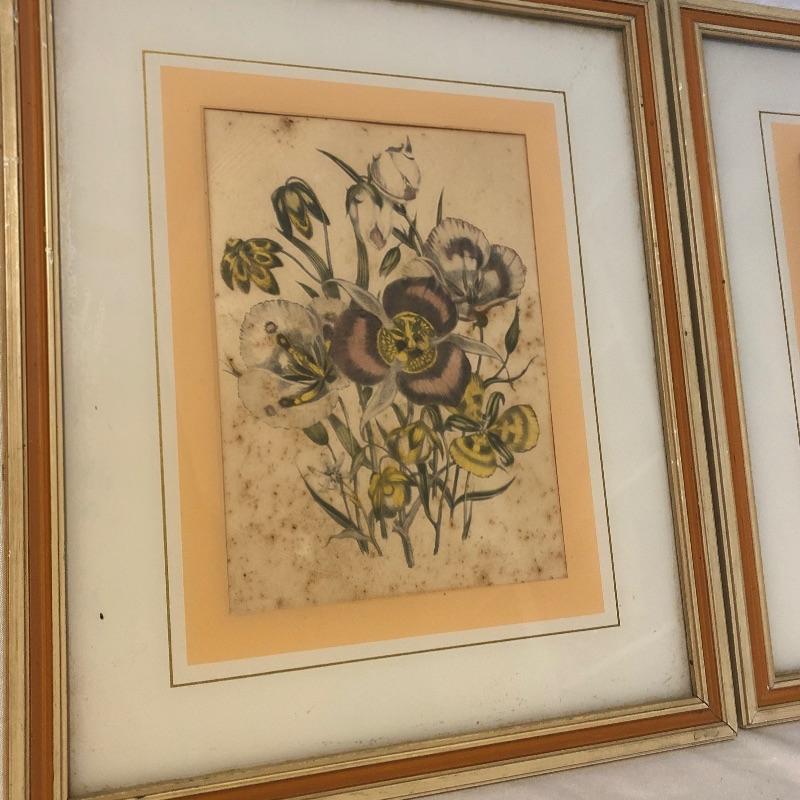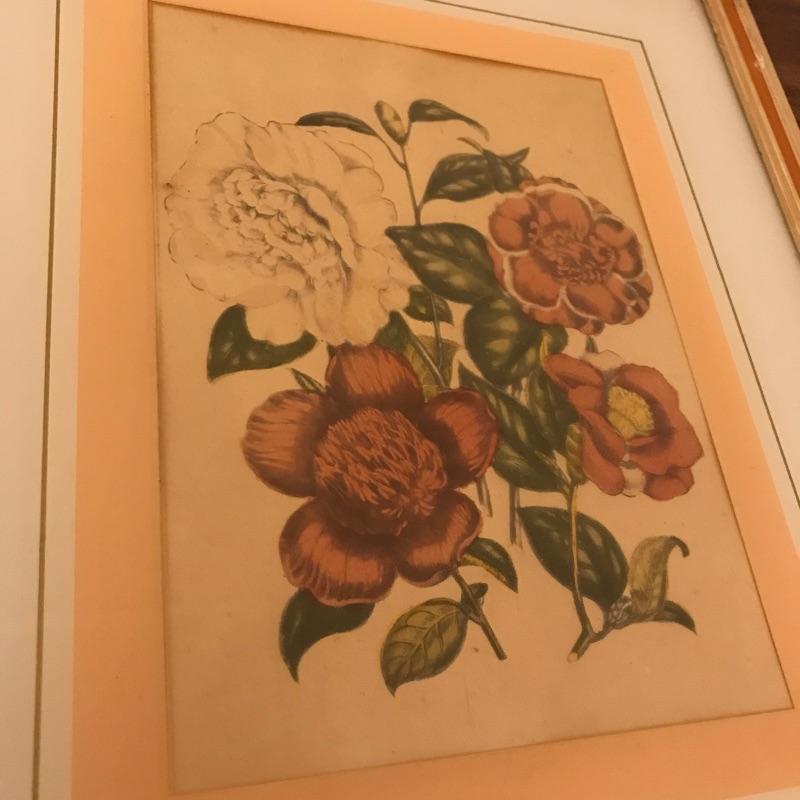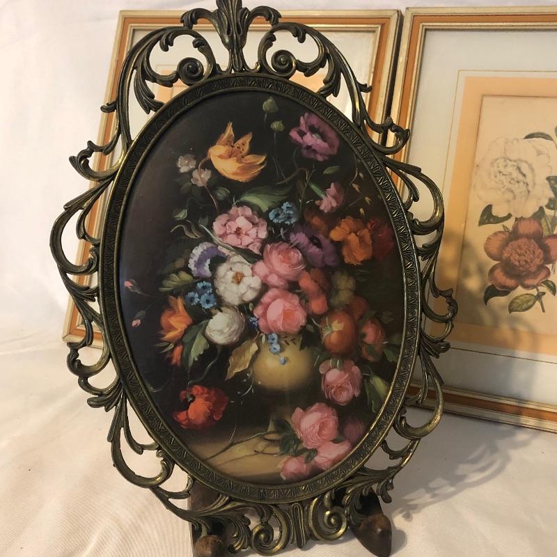 A total of five stunning floral scenes framed behind glass here. Two lovely matted color prints measuring 11” x 13”. Frames are tan and light orange; there are small blemishes on each frame and one picture seems to be discolored. There are two round framed pictures of flowers in vases, these wooden circular frames are off white with gold patterned trim. Each round picture is approximately 13”d. The final picture is an ornate metal framed picture of roses. The frame is approximately 9” x 12”. This picture is backed with patterned felt. This is a great lot for any flower lover. Shipping Available.