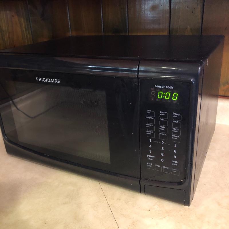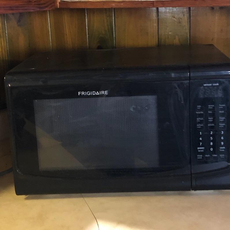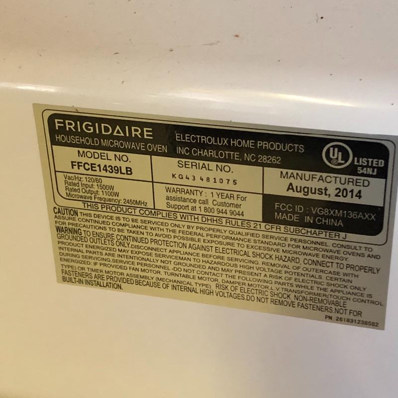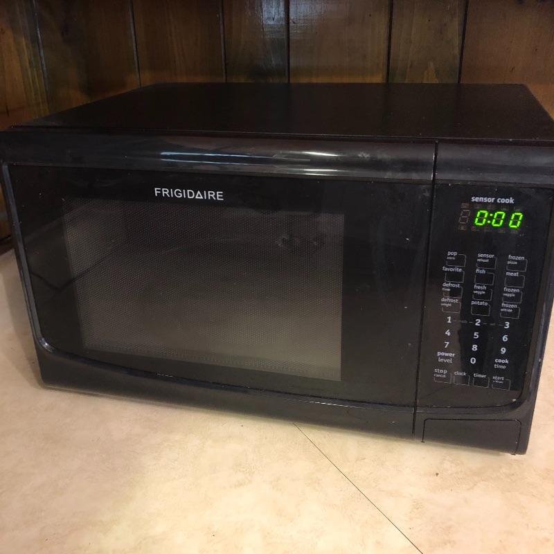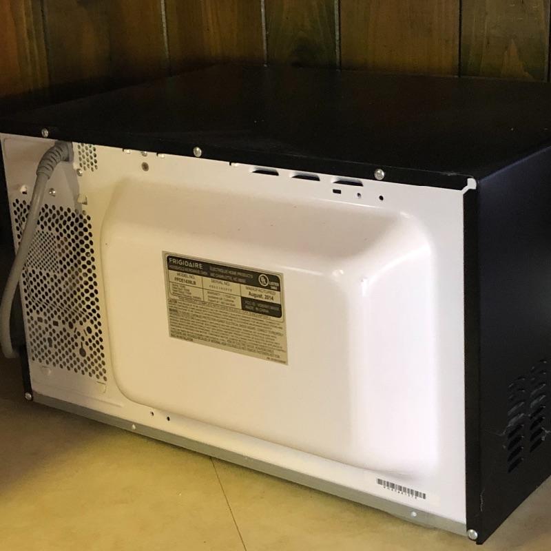 This Frigidaire microwave works great and measures approximately 20.5” x 15” deep and 12” high. It operates and the inside plate rotates when used. Local pick up only.