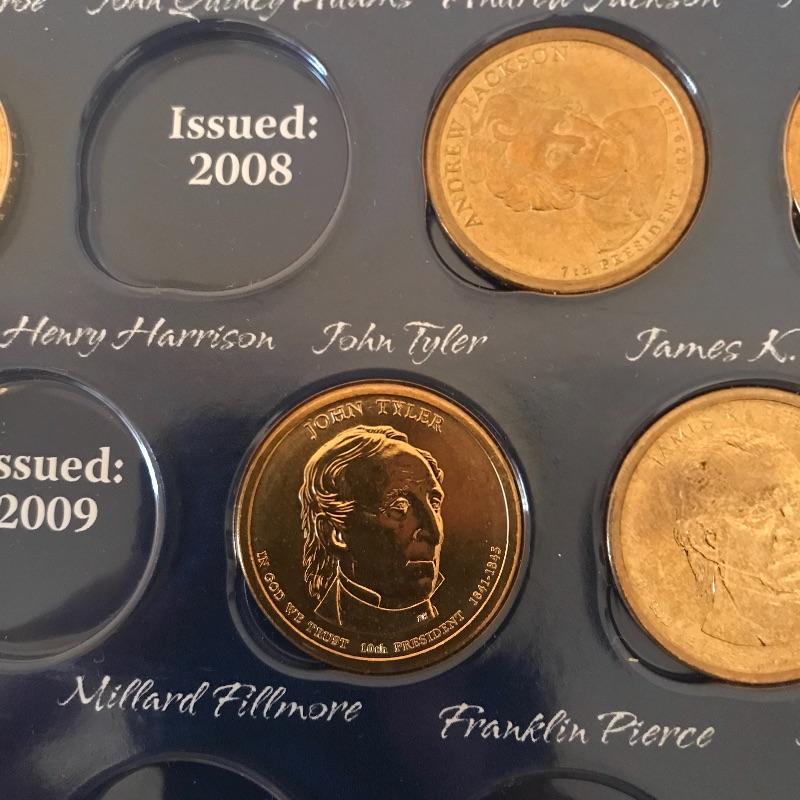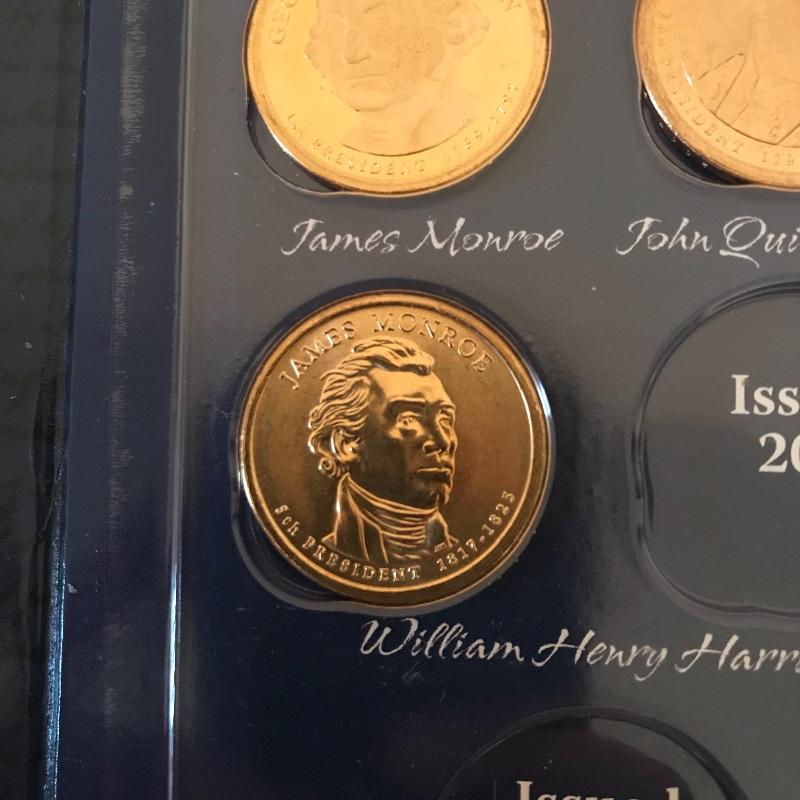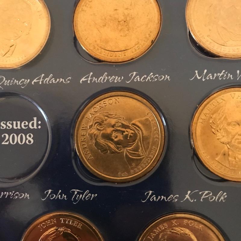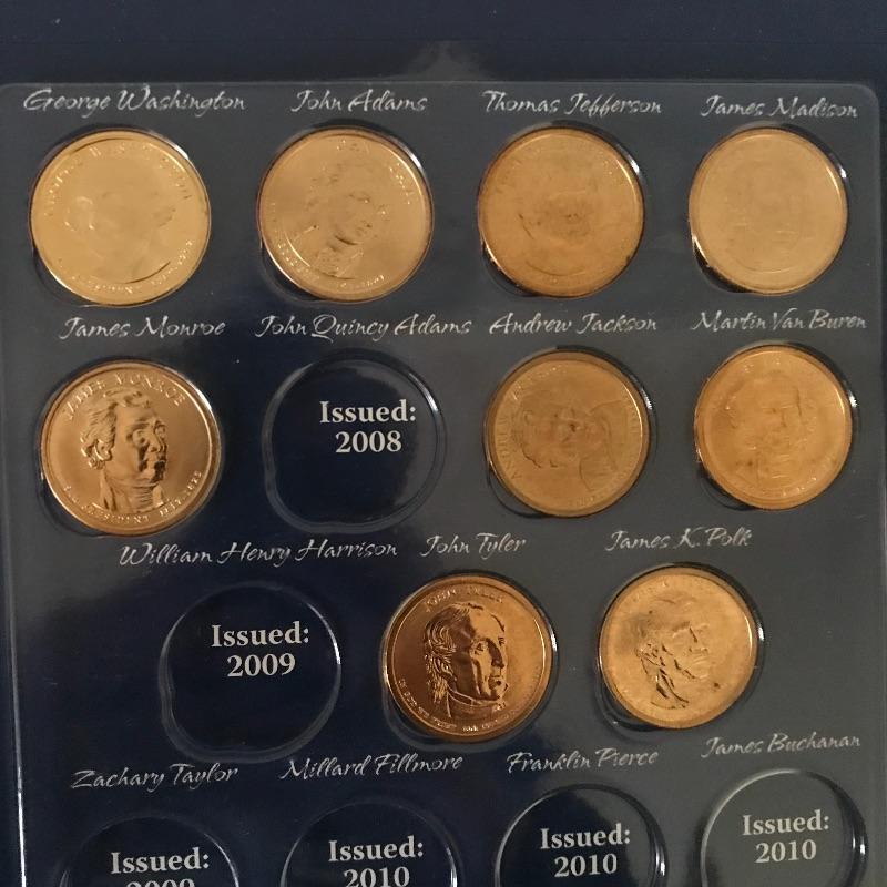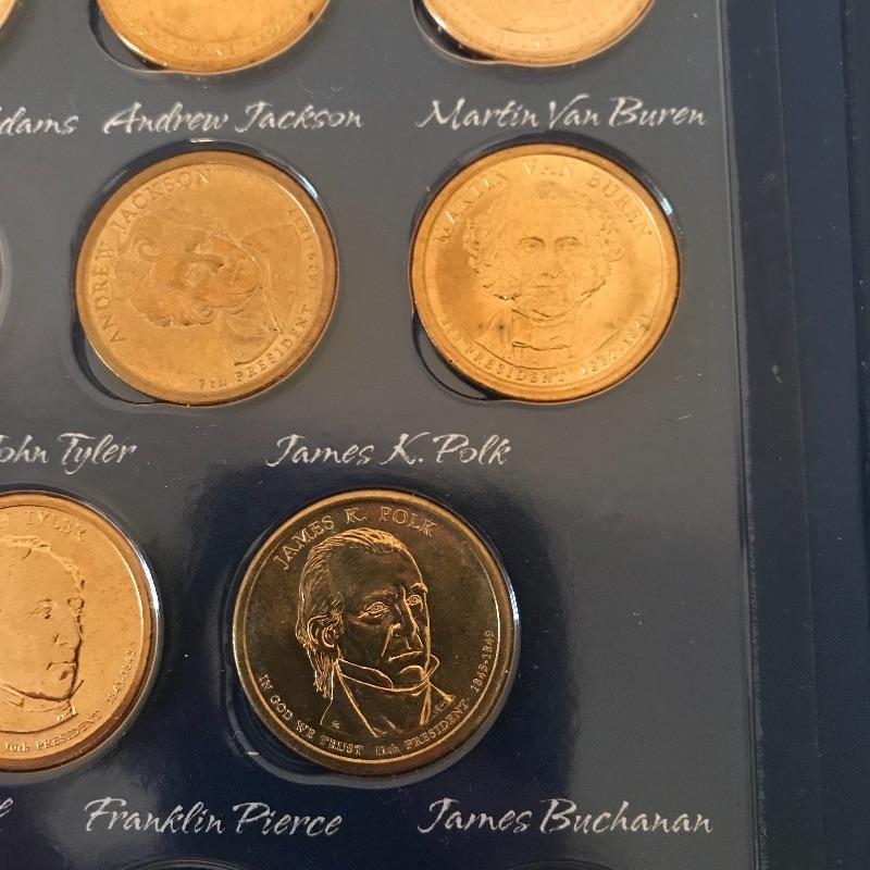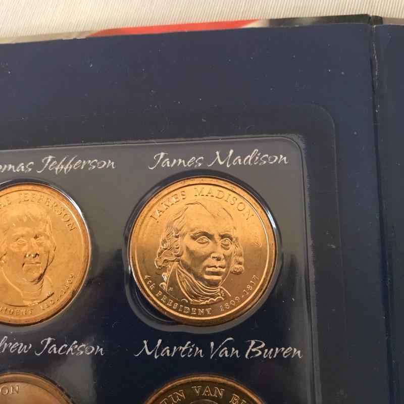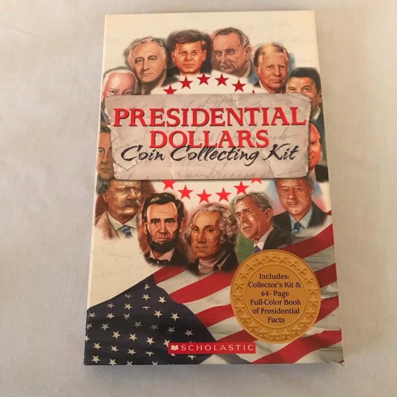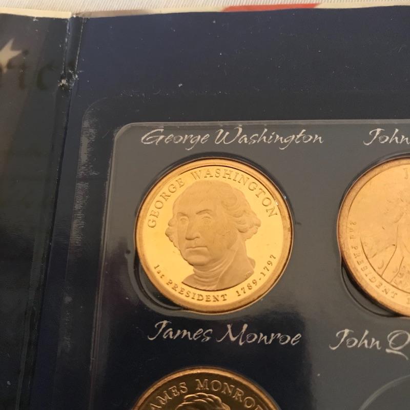 2000 JFK half dollar with a case that states 18k gold plated. John Adams 2007 dollar coin with two stamps. A Presidential Dollars Coin Collecting Kit with Book with nine coins. Collection also contains Silver Kennedy medallion See photos.