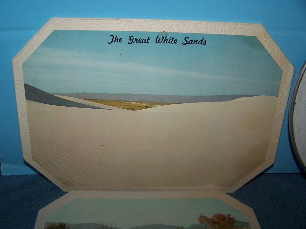 THESE ARE GREAT VINTAGE HOT PADS/PLATES/TRIVETS!! 2 ARE FROM NEW MEXICO.. ROUND ONES ARE 8 1/2'' ACROSS.. LIGHT WEAR..