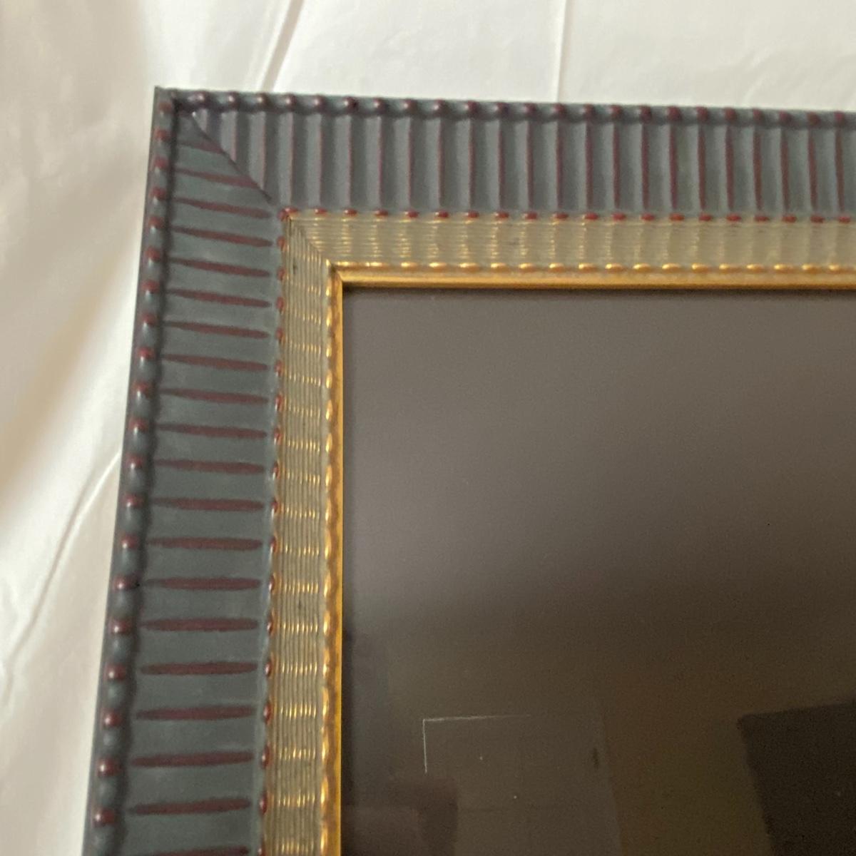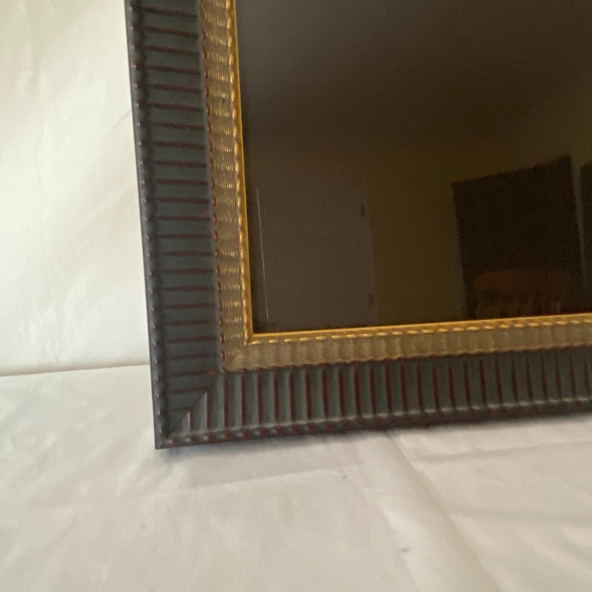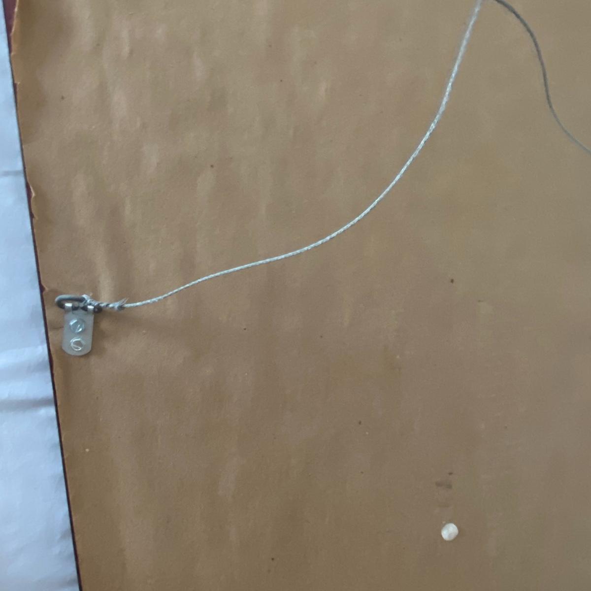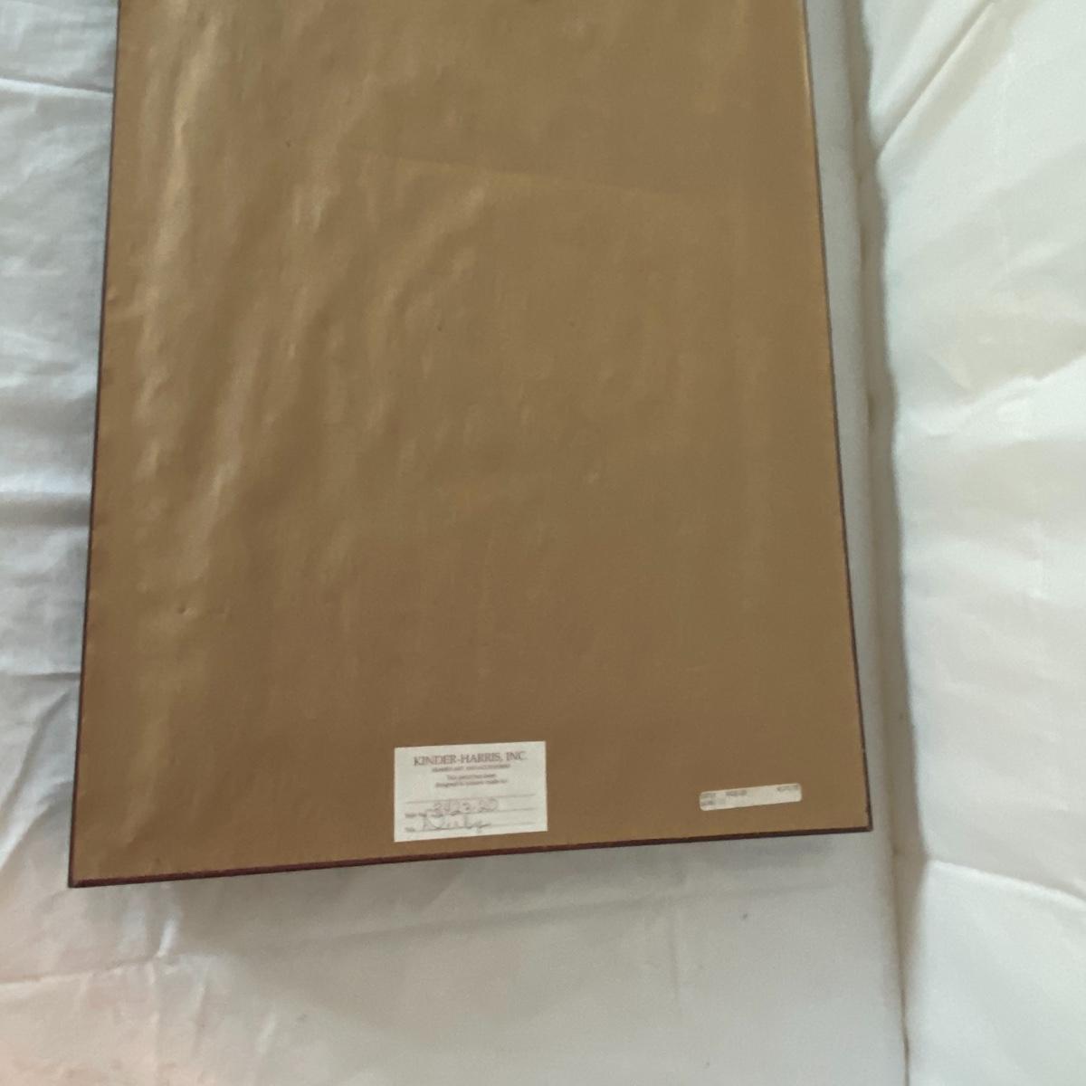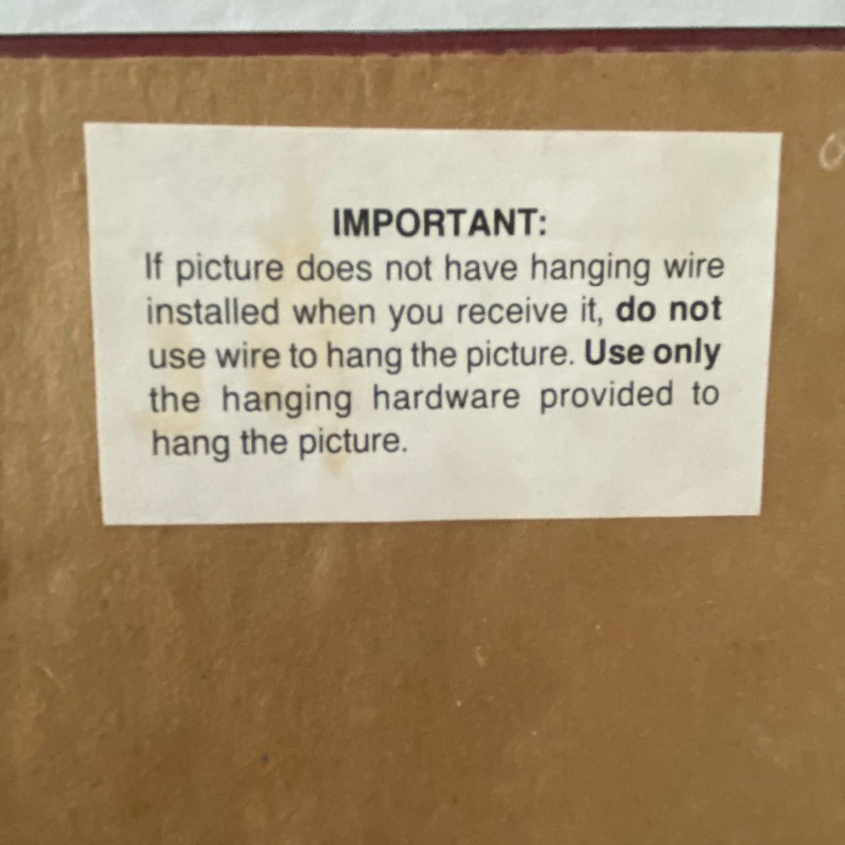 Large framed art piece with black and gold matting measures 18.5”x44”. The art depicts a bucking bull and is titled “derby” as per sticker on the back. No seen signature. See photos. Local pickup only.