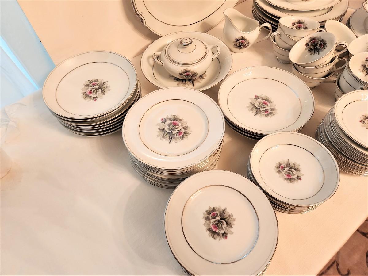 Lot #23  Large Set of Vintage Empress China Dinnerware "White Rose" Pattern