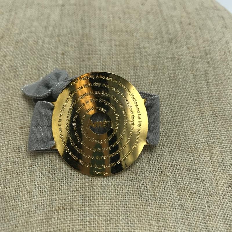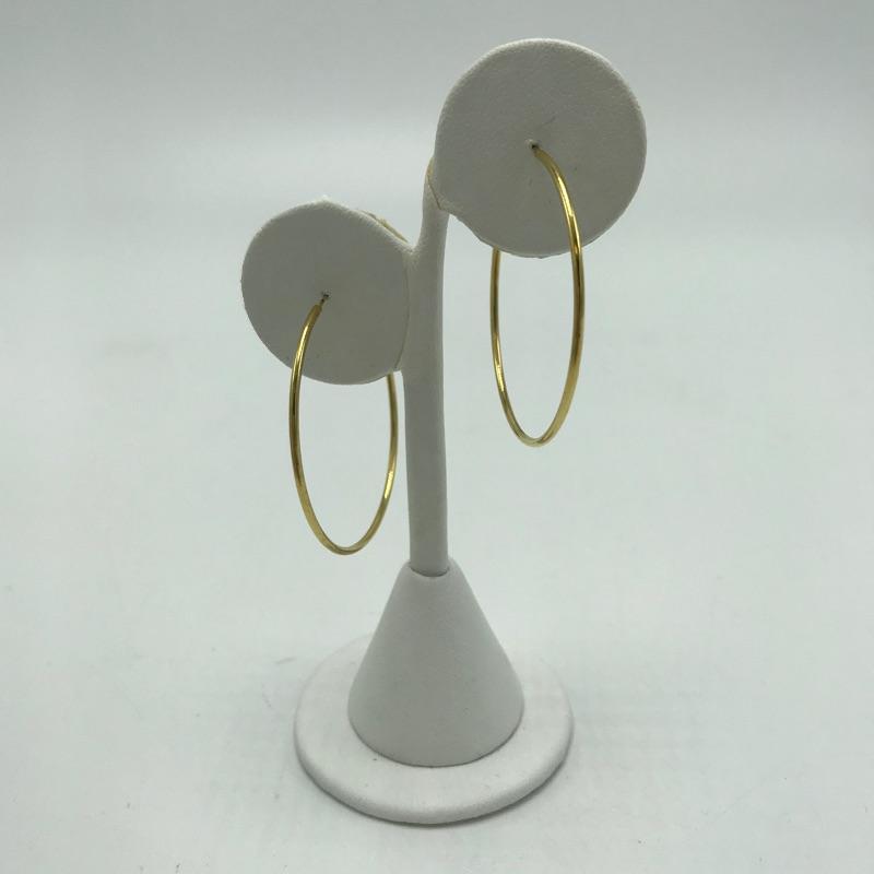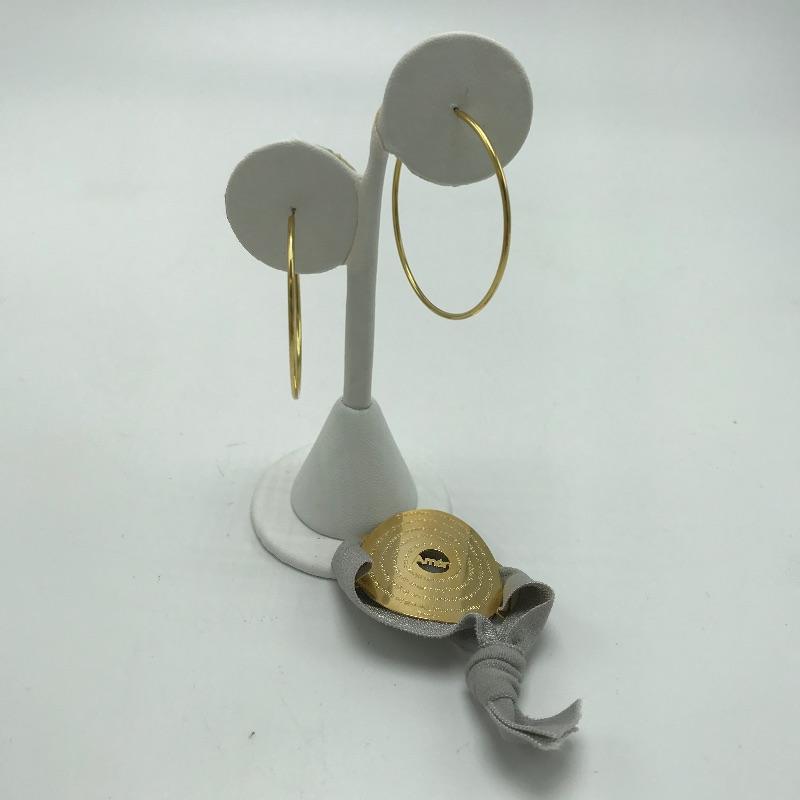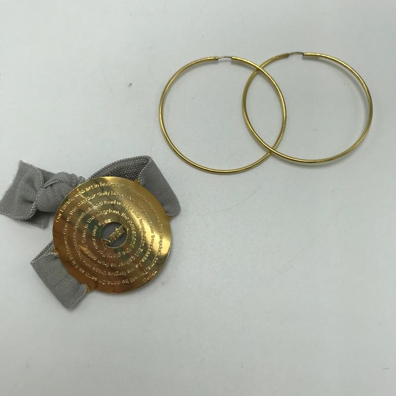 Golden duo of hoop earrings and Lord’s Prayer charm. The Lord’s Prayer is on a nylon like wrap perfect to attach to your daily purse, keychain and the like. A nice pair of golden hoop earrings with almost 1.5” diameter. Metal material markings were not located on either charm or earrings. Earring stand is not included in lot. See photos.