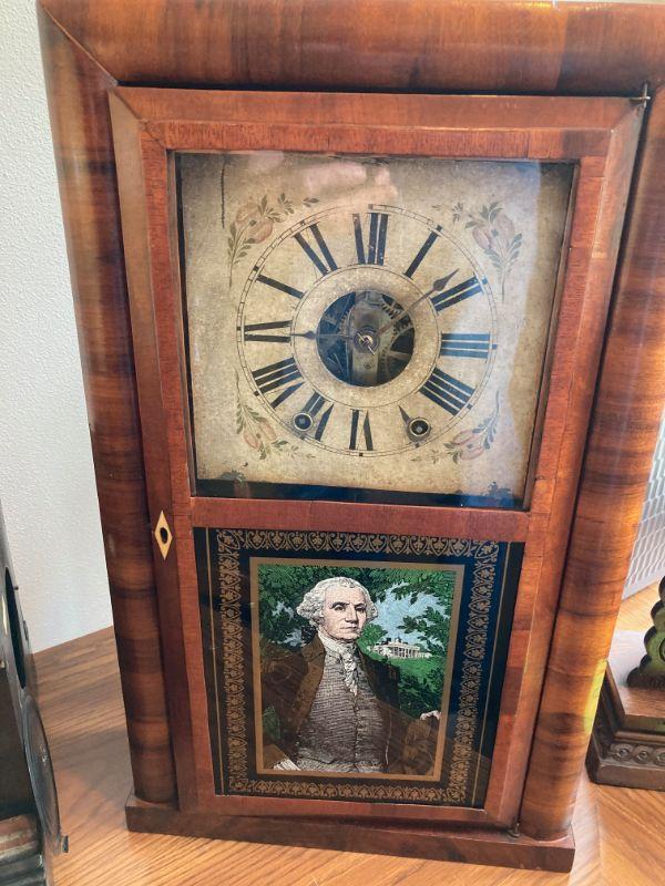 Lot #23 New England Shelf clock w/ George Washing ton glass