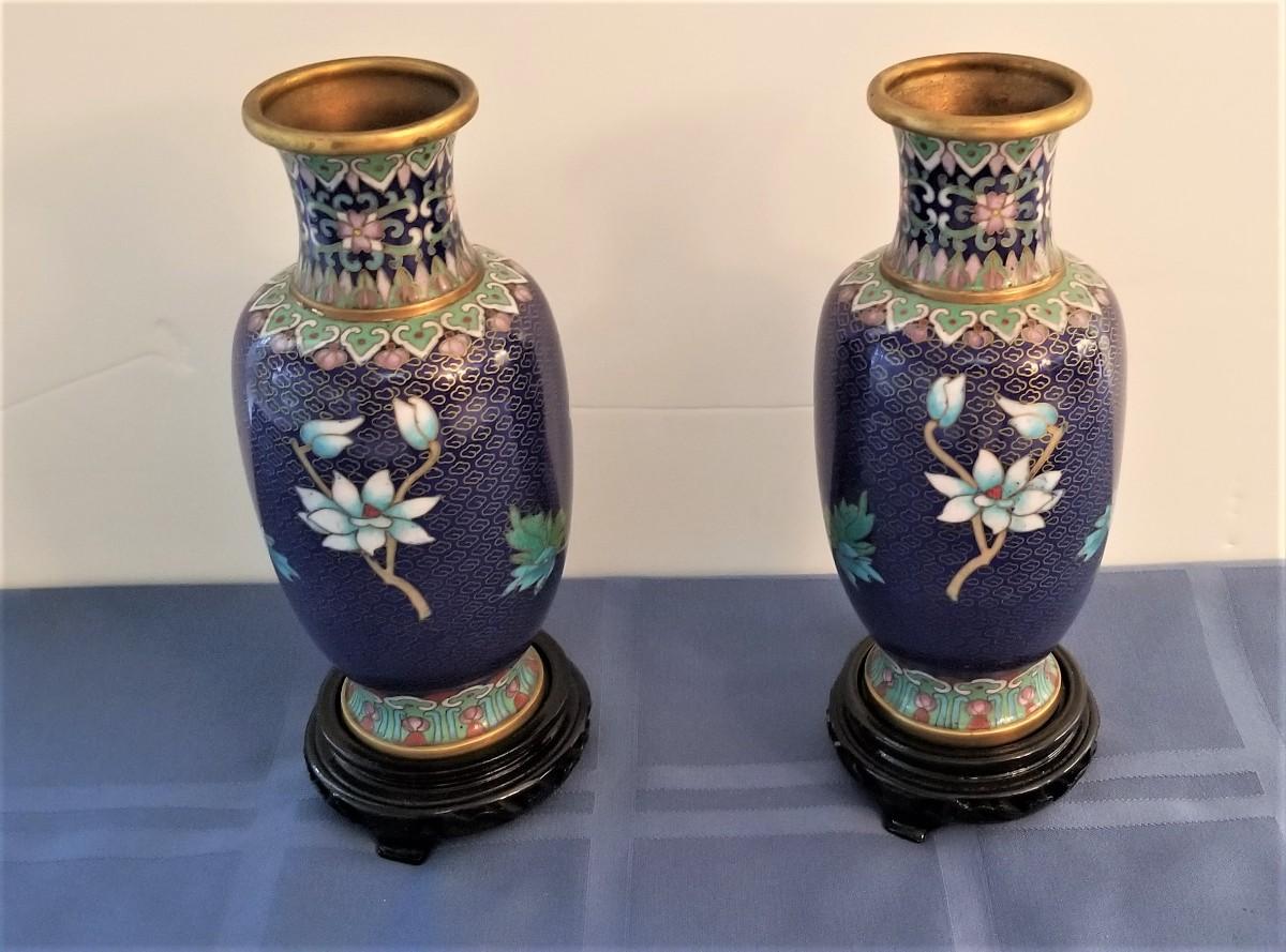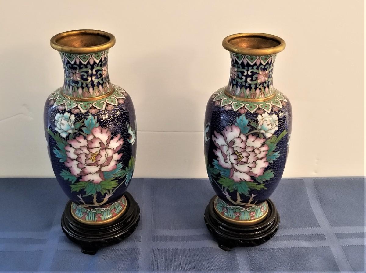 Lot #23 Nice pair of Asian Style Cloisonne Vases on Stands