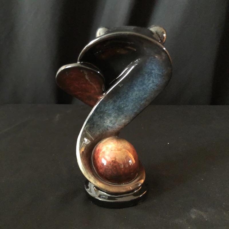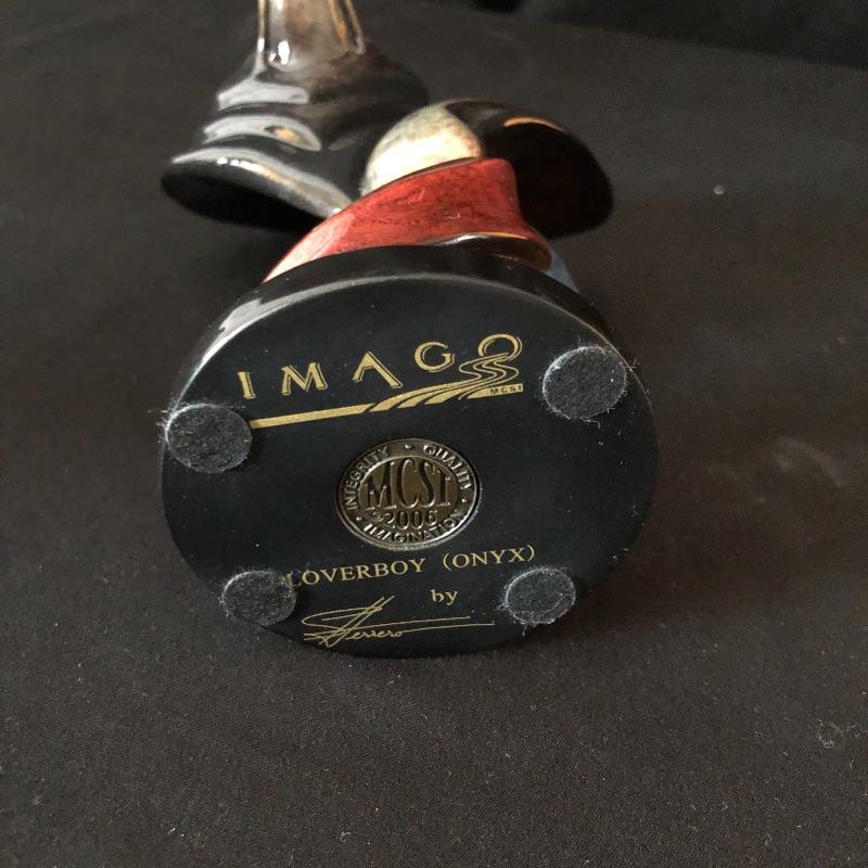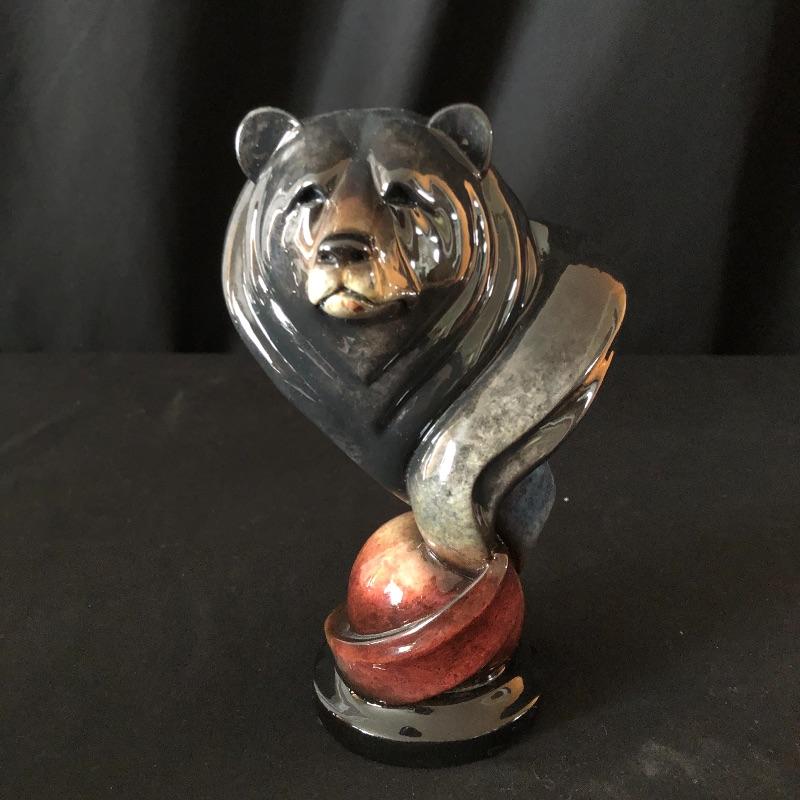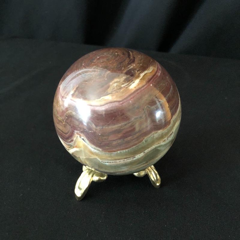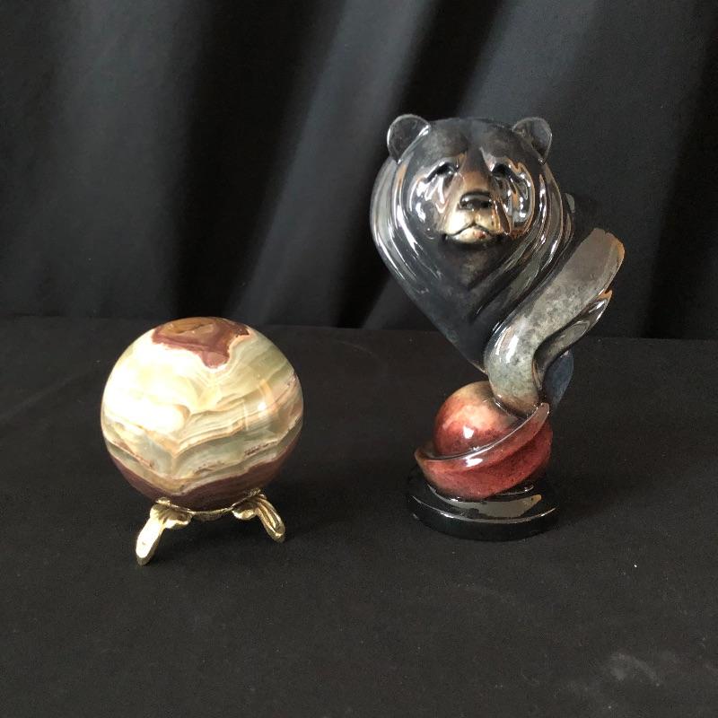 Two lovely items here that includes an onyx sphere with a brass stand that is made in India and a Imago Loverboy onyx bear figurine.