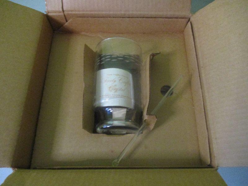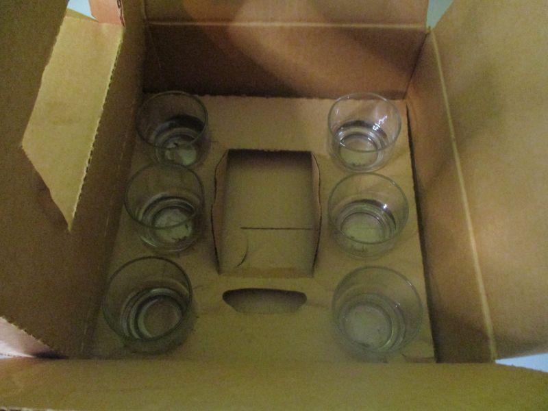 This set does not appear to have been taken out of the box. It has the large piece to mix the drink in, the glass stir stick, and 6 glasses.